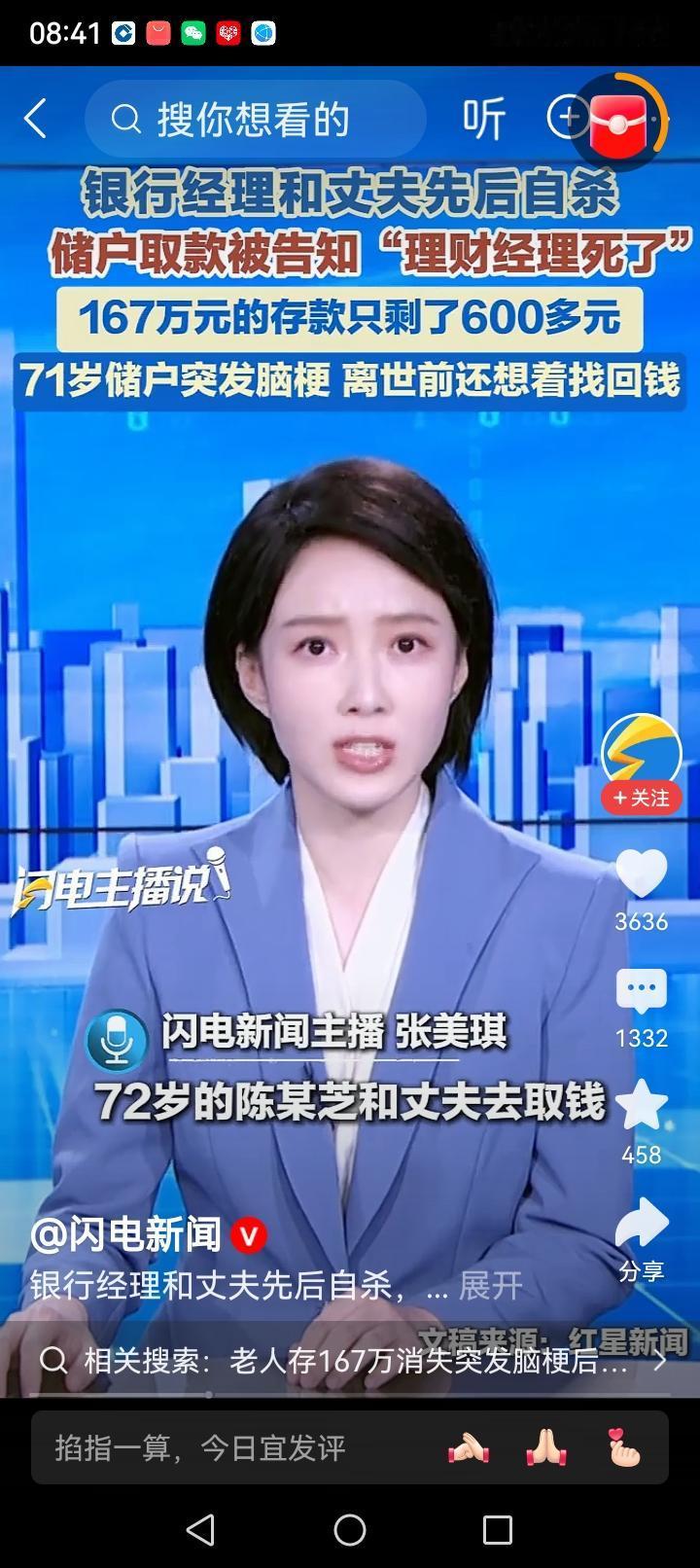 存款167万账户只剩600 银行回复:客户经理已自sha 70多岁的银行储户取钱时发现自己的167万元变成了600元。 找到银行后得到的结论是,客户经理及其账户均已自杀身亡。 这难道就是结论?这难道就是银行给客户的服务?这难道就是银行的担当? 储户本人患脑梗后不幸离世。临终前他还惦记着这笔钱如何追回来!真是人间惨剧啊! 事件被曝光后网友们首先想到的是自己的存款还安全吗?如何辨别存款与理财与保险的区别?
