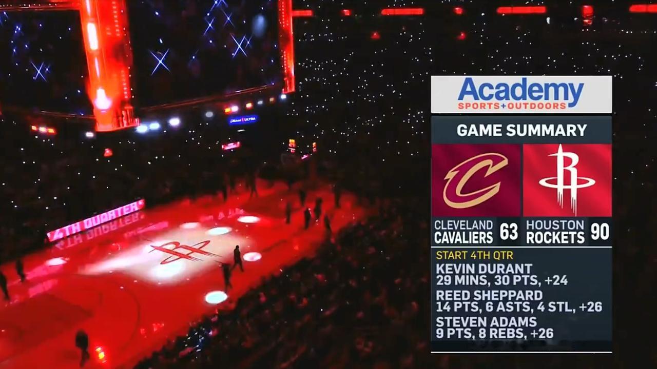 全场火箭117:100骑士。 首次固执卡五锋阵上来了。 杜兰特30分4篮板7助攻