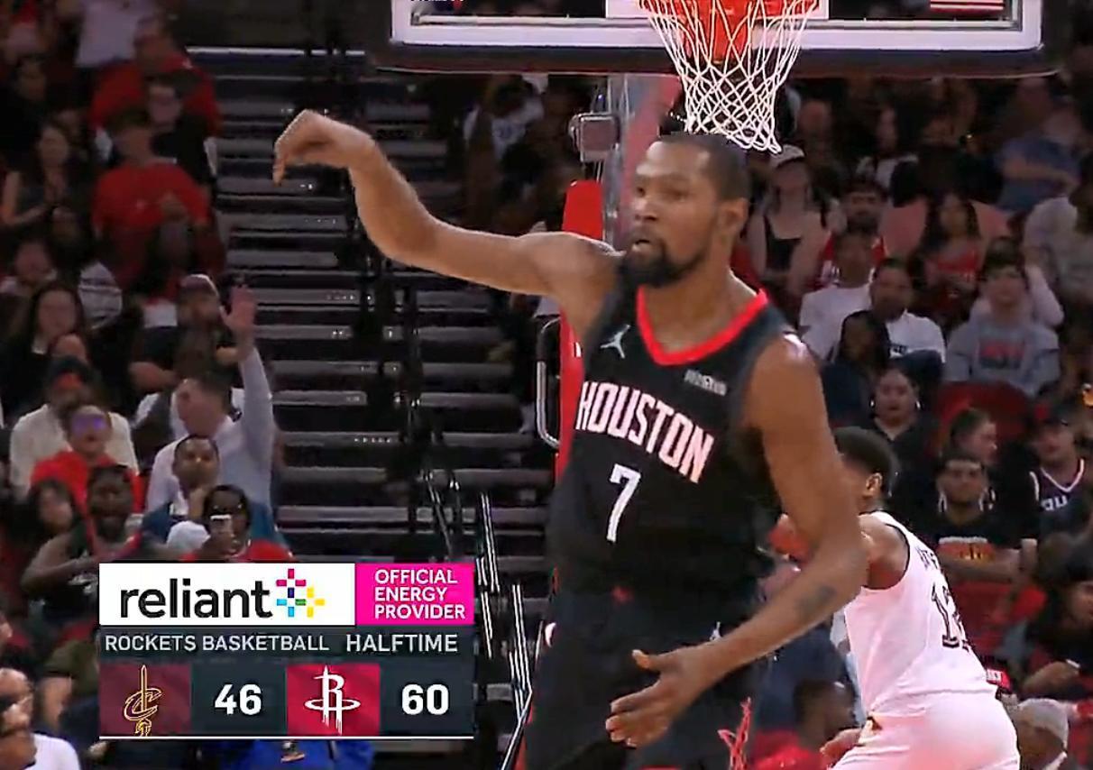 半场火箭60:46骑士。 杜兰特23分5助攻 小贾7分 海王5分 伊森5分 阿门5分 谢泼德8分5助攻4抢断 dfs3分 霍老三2分 饼皇2分