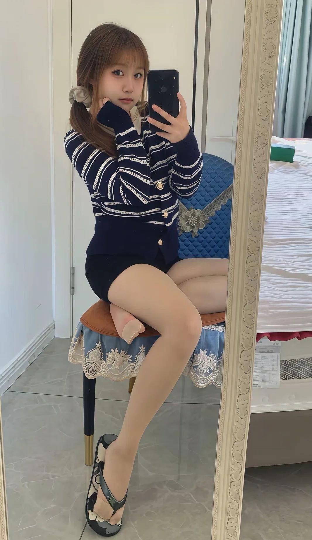 元气少女穿搭指南,黑白条纹毛衣搭配黑色短裙,甜美可爱!💖👗👠
