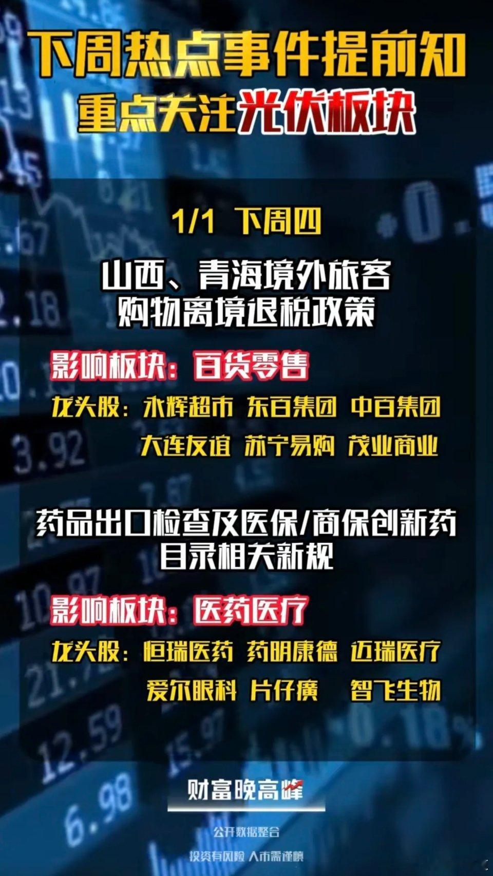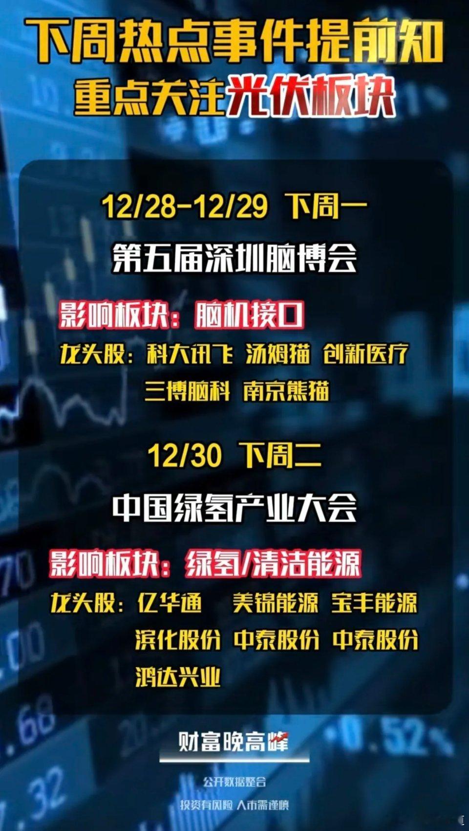 12.29~1.05下周财经热点事件前瞻!1.脑机接口2.氢能源大会3.福建自贸区4.卫星导航5.百货零售6.医药医疗今日看盘股票