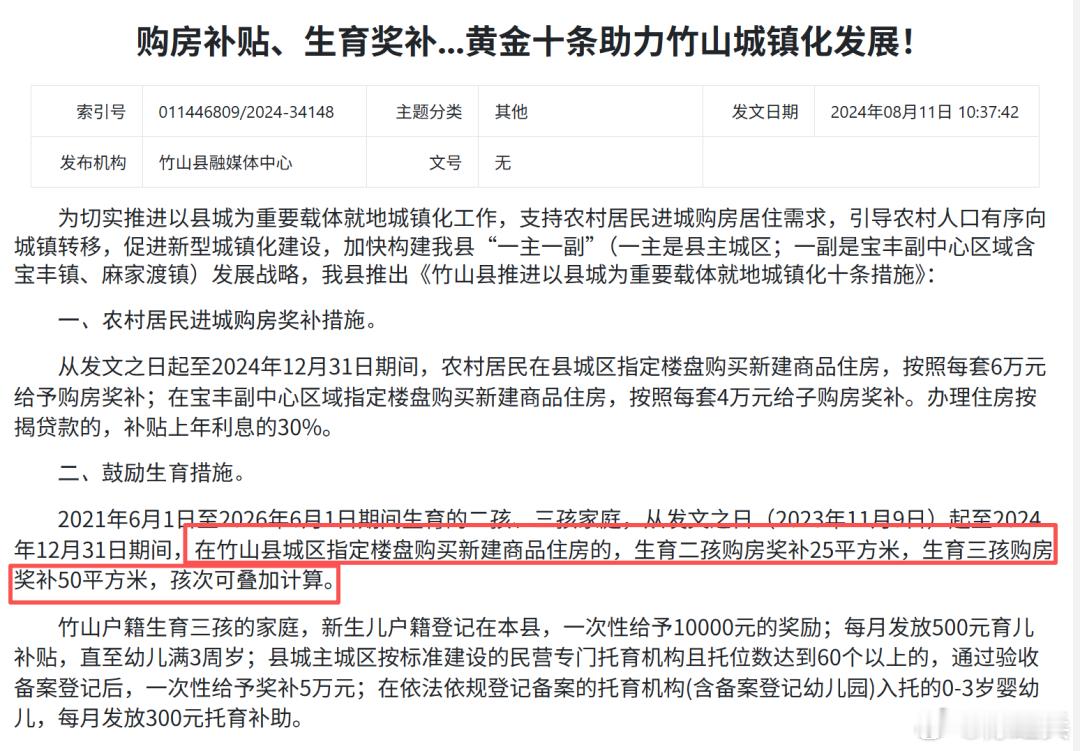 湖北一地“生娃送房”,二孩购房奖补25平方米,三孩奖补50平方米,叠加后最高可获