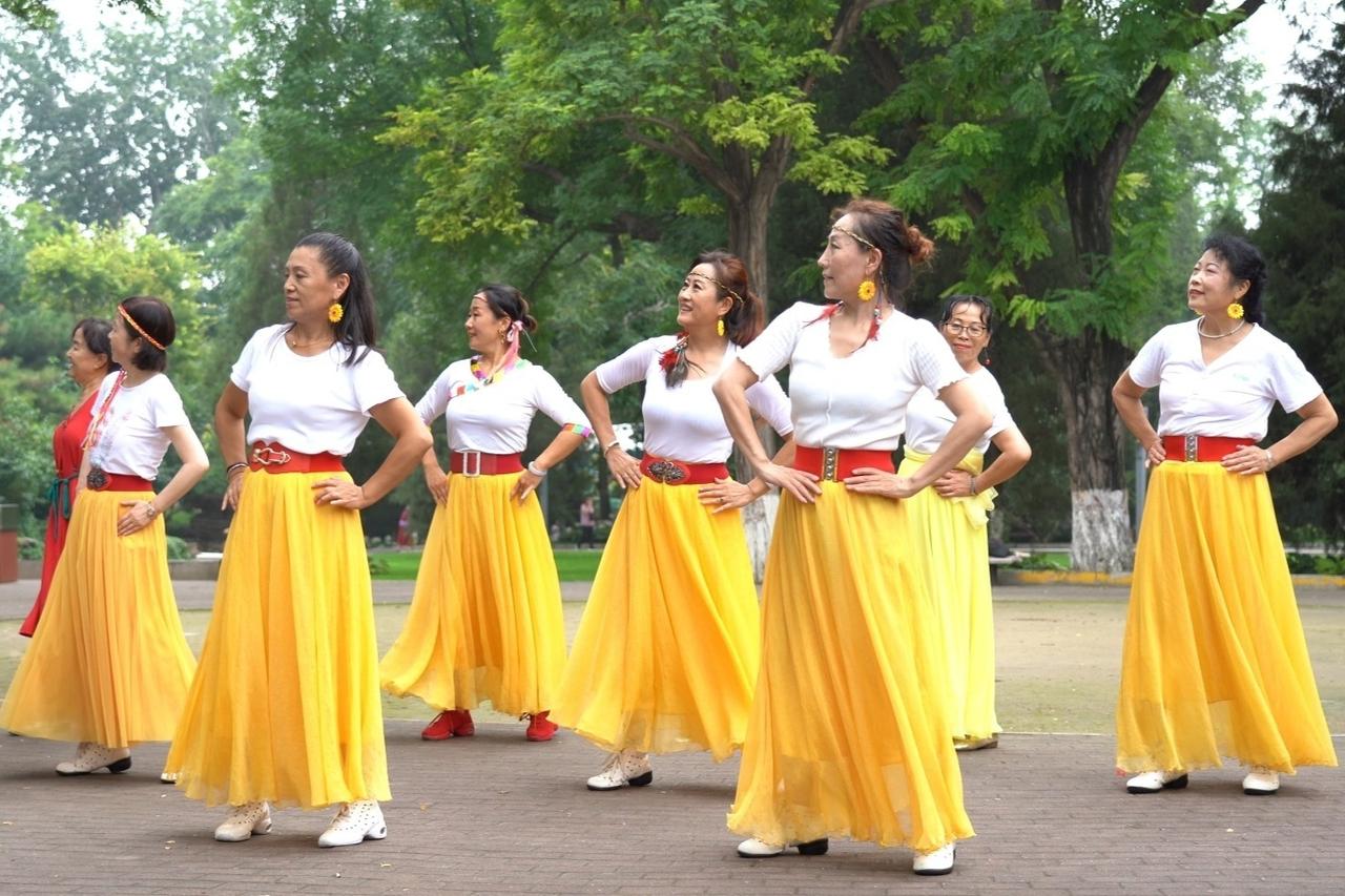 正午的阳光刚软下来,小区的空地上就热闹了。红的绿的舞扇先晃起来,像突然绽开的花,跟着节拍轻轻转个圈,风都跟着暖了几分。 阿姨们踩着鼓点挪步子,鞋底蹭过地面的声响,混着音箱里的小调,成了午后最鲜活的背景音。有人手牵手跳双人的,笑意从眼角漫到嘴角;有人记不太清动作,跟着前排慢慢晃,倒也晃得自在。阳光落在她们扬起的发梢上,把银丝染成浅金,连额角的汗珠,都闪着细碎的光。 路过的小朋友会停下,踮着脚学她们摆臂;买菜回来的大爷,也会站在树荫下多看两眼,嘴角悄悄弯起来。其实哪是跳得多好,不过是趁着暖融融的午后,把日子里的琐碎抛开,让身体跟着节奏轻轻晃——这晃着晃着,就晃出了最踏实的小欢喜。