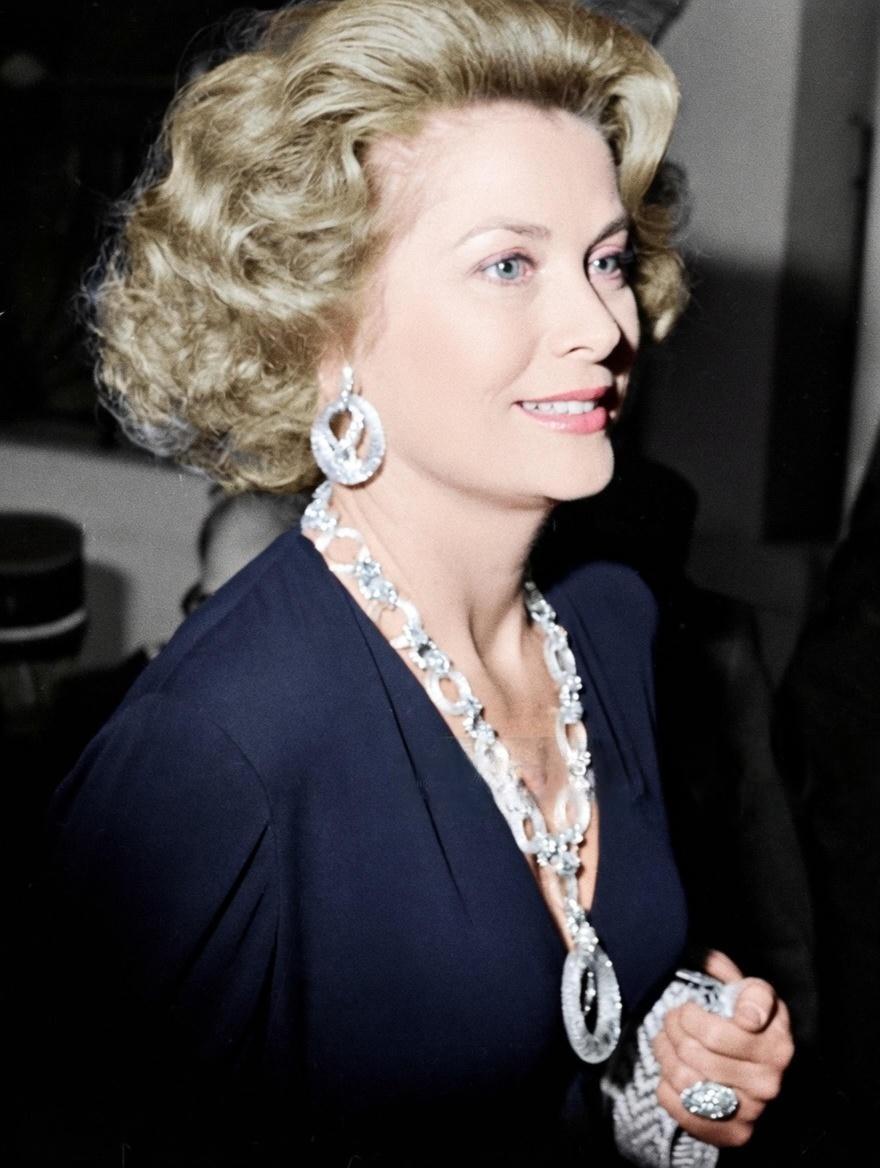 曾属于摩纳哥王妃格蕾丝的耳环和胸针,配套设计,都是环形白水晶加上黄金和钻石的装饰,是Louis Gérard在创立梵克雅宝之前在60年代初的作品,格蕾丝大概率在60年代中后期购入 现代风设计,走的也是日常珠宝的路线。格蕾丝70年代偶尔会出现一些佩戴照,多见于日间场合或者比较休闲的宴会 格蕾丝死后这3件没有再被任何人佩戴过,曾参与日常珠宝巡展,理论上归王室(即她儿子阿尔贝二世),但具体在谁手上拿着不好说