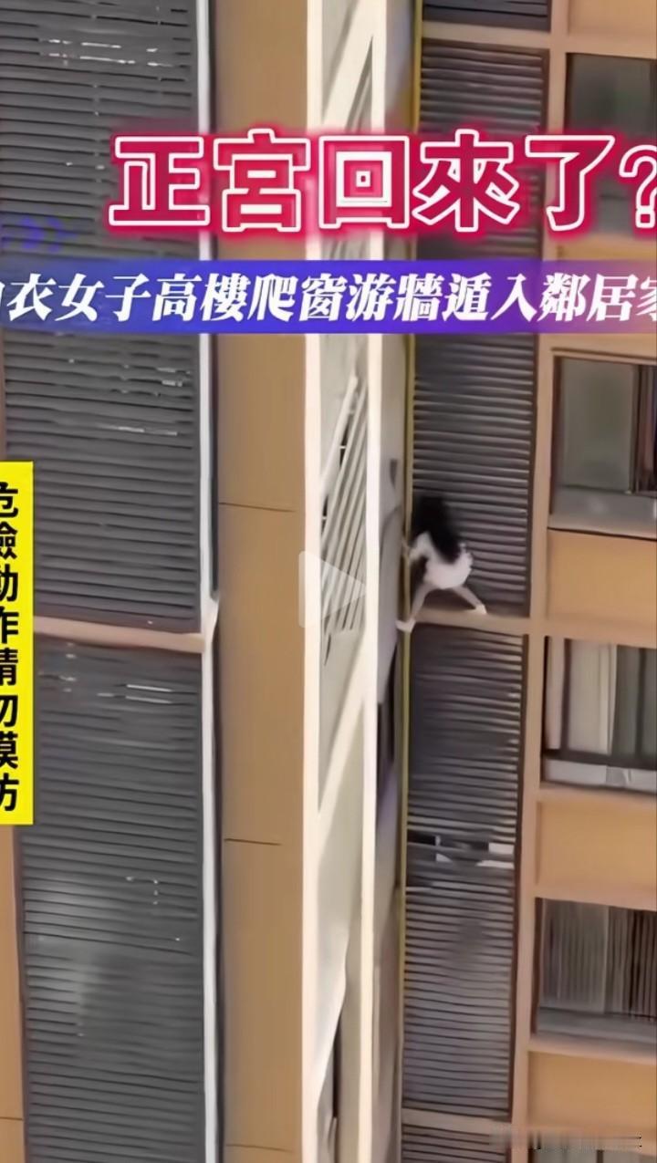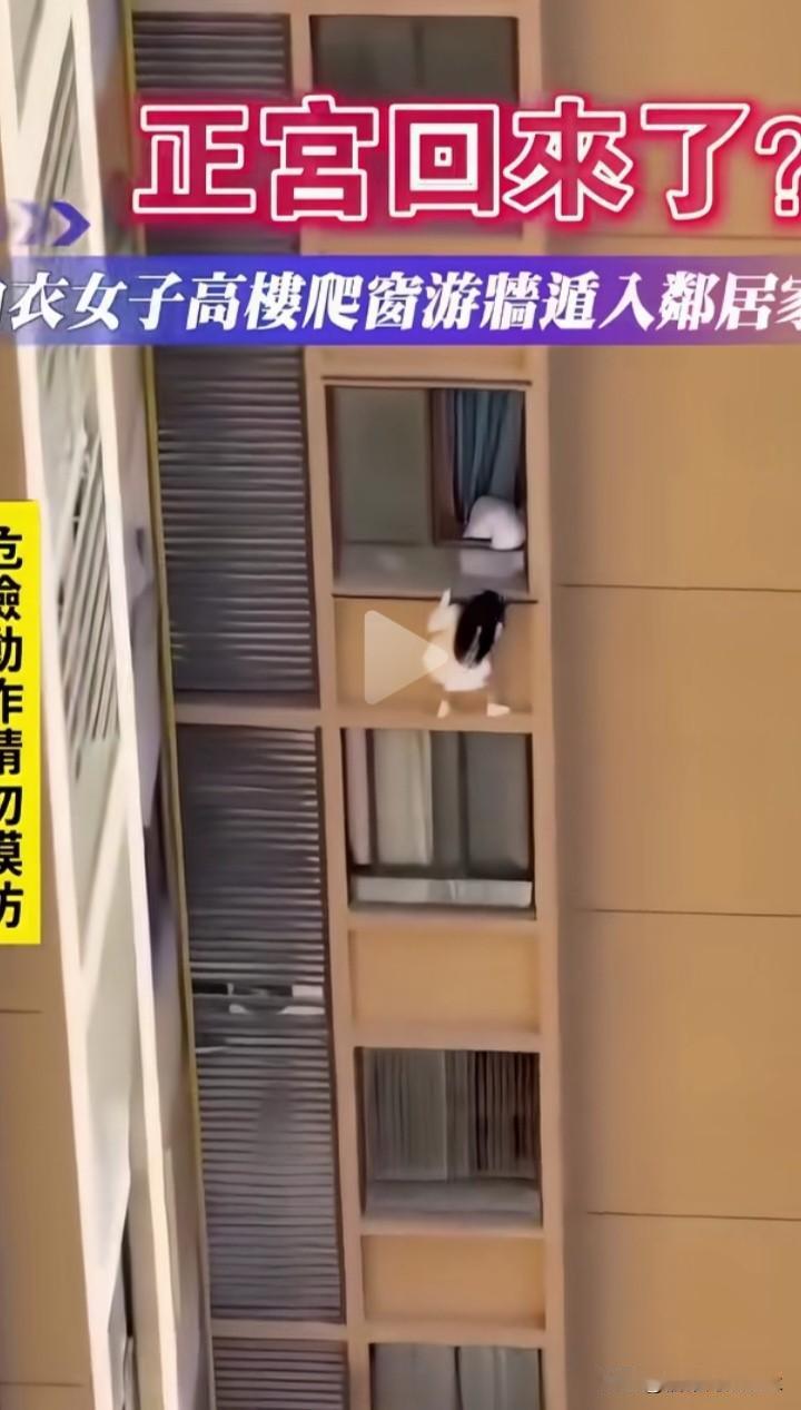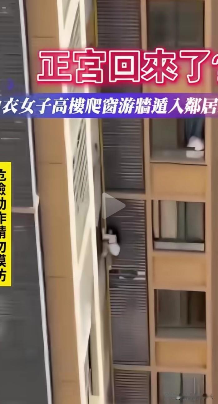 这是何苦呢?正宫突然回来了,女子高楼爬窗游走,步步惊心,楼对面的人,心提到了嗓子
