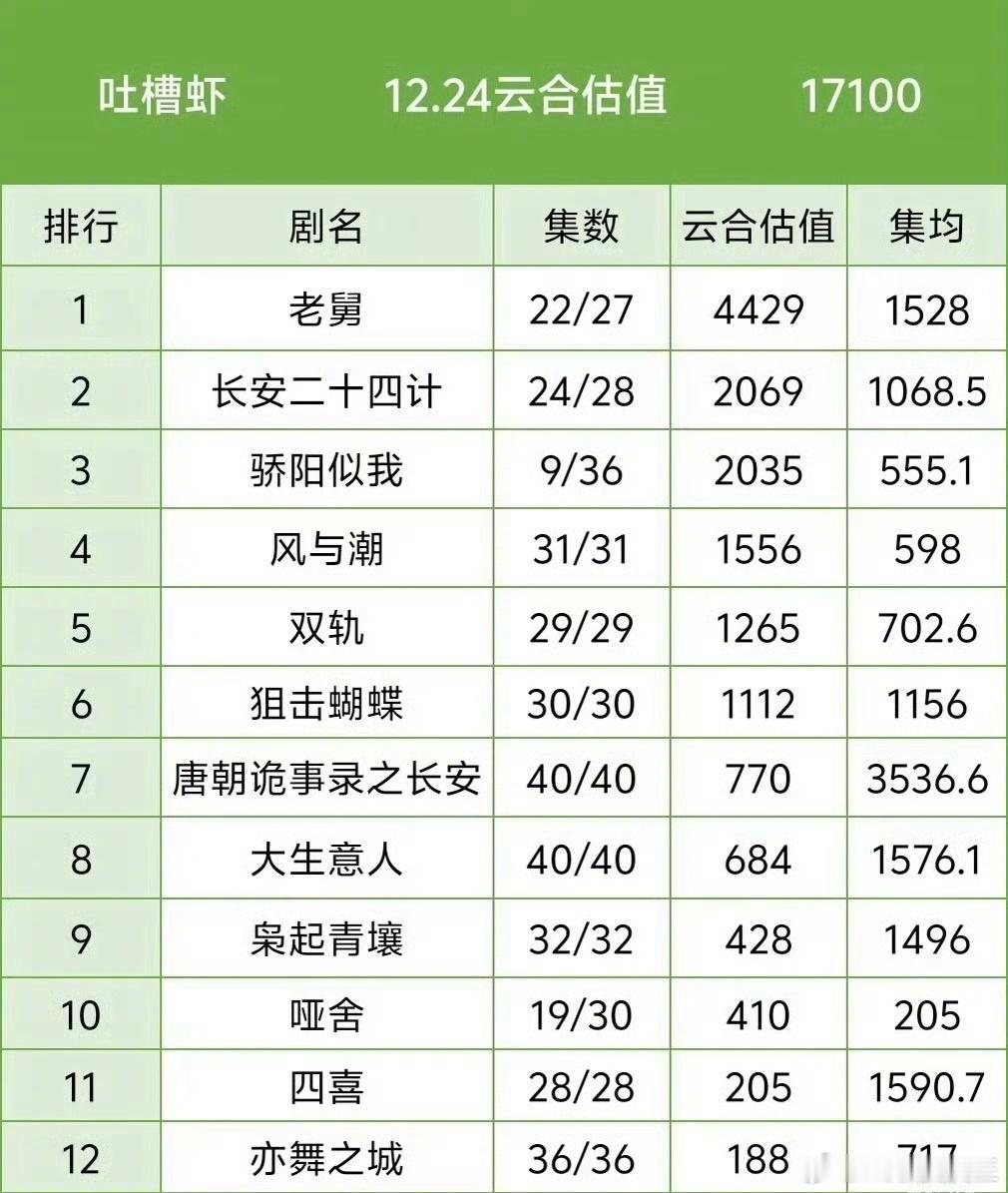 来看看迪丽热巴今年的成绩单。《利剑·玫瑰》热播期集均2698w,平台🐧+🥝。《枭起青壤》目前依旧还处在热播期中(有57天热播期),最终集均大概1600w左右,平台🐧。作为顶流90花,迪丽热巴今年的成绩如何?
