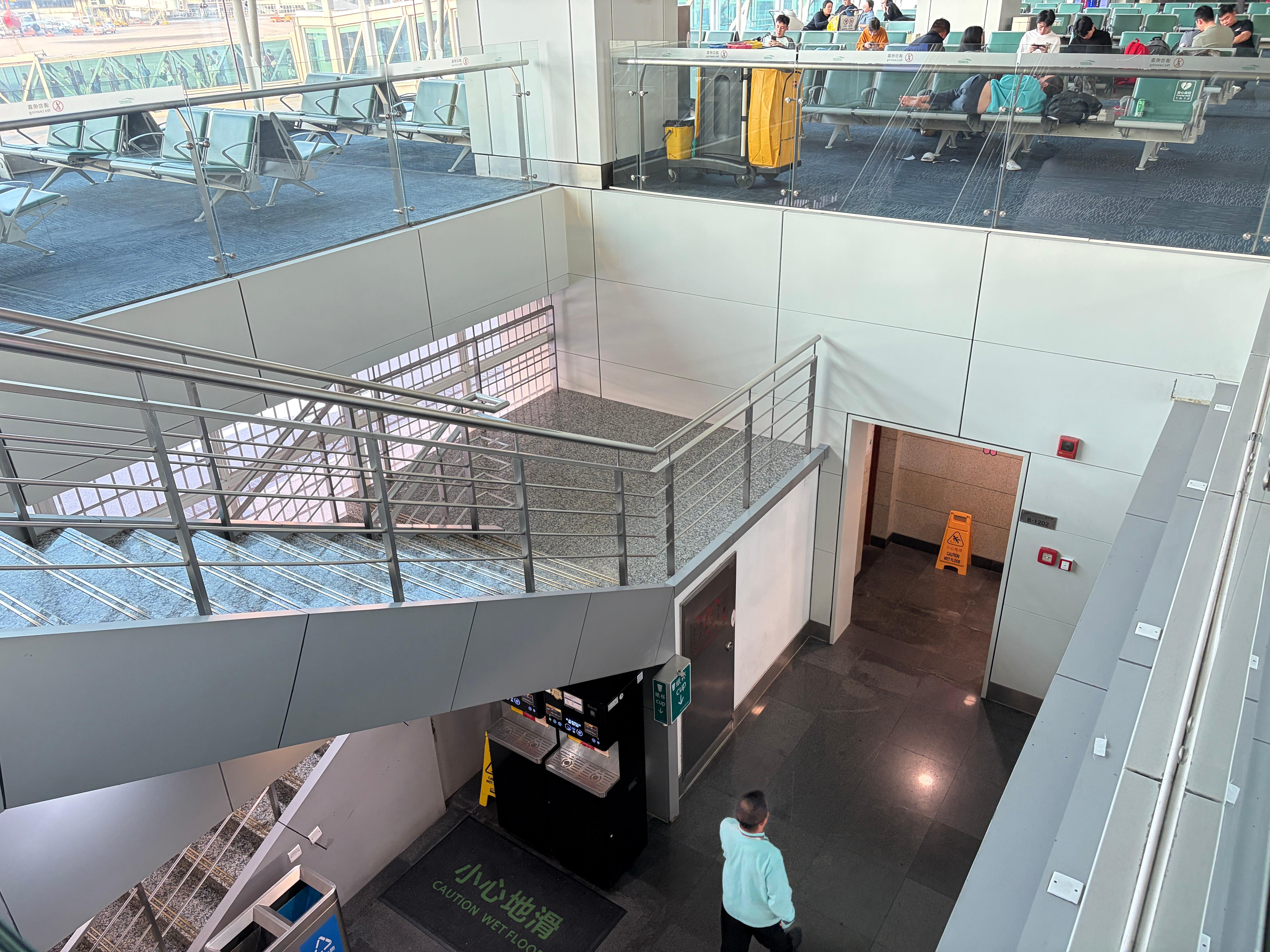 广州白云机场T1·B区这边的卫生间布局,真的相当的不合理,前后都没有(或者说比较远),最近的一个是在楼下,还是只有楼梯没有电梯的,那么请问,如果我拖着行李,又想上卫生间,是不是就有点痛苦了?