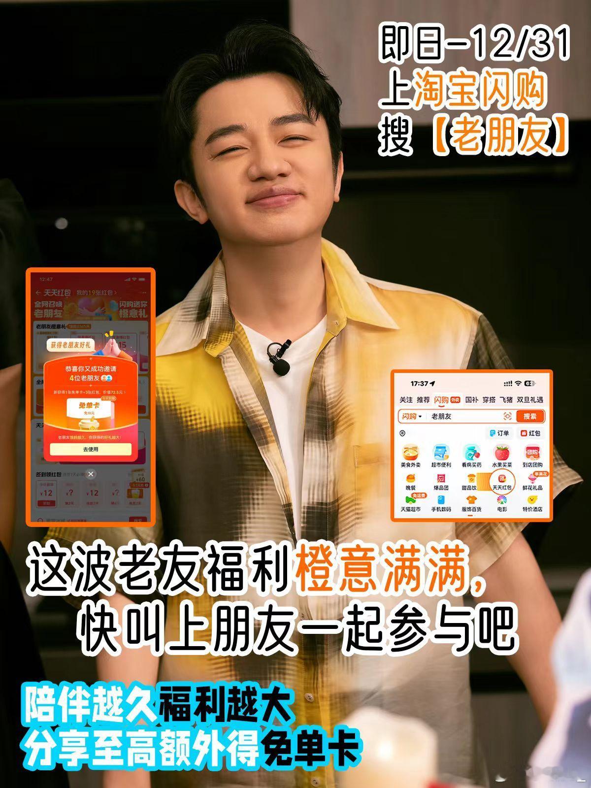 王祖蓝喊你回淘宝闪购领老友福利省钱党必冲!超级周末老客专属福利,王祖蓝送羊毛攻略~即日起至12月31日,上淘宝闪购️搜【老朋友】,时间越久,包金额越大!至高可领7张单卡!邀请好友最高可额外再得免单卡~别错过~淘宝闪购请回老朋友这波回忆杀淘宝闪购全网寻老友