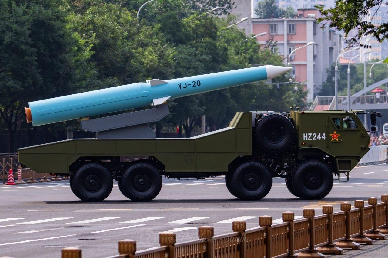 海军公布055型驱逐舰发射YJ-20高超音速反舰导弹的。巡航速度超6马赫,末端速度可达10马赫,射程超1500公里。可进行远程打击,几乎无法拦截。