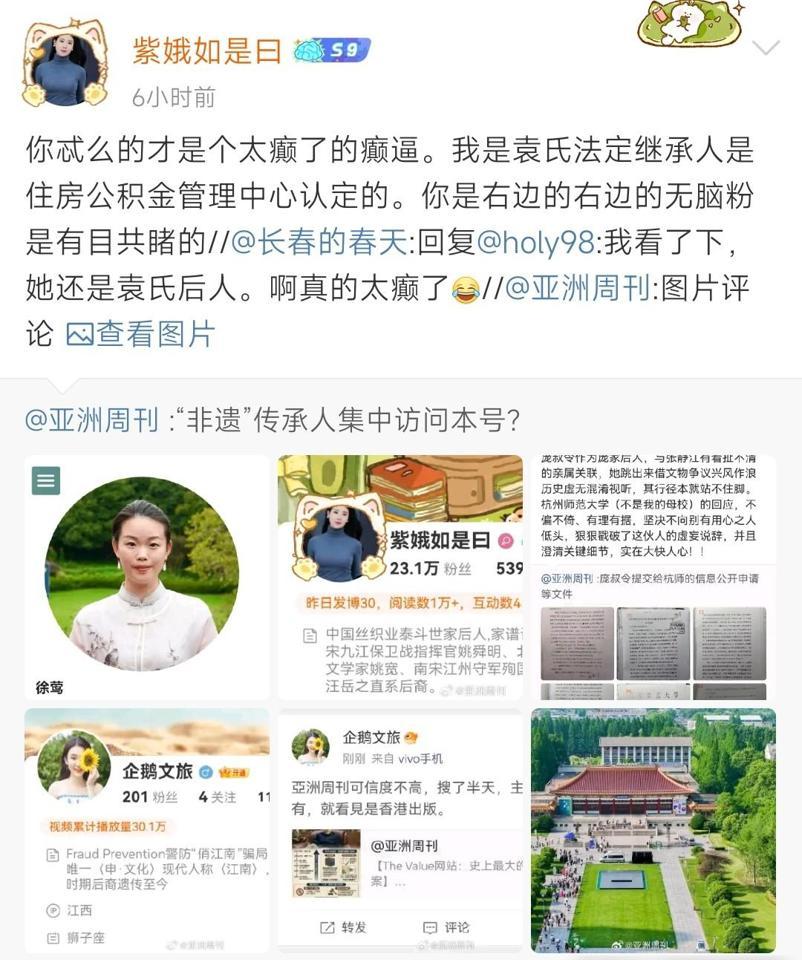 南京博物院的风,刮得有点猛。 徐莺的社交账号,彻底乱了阵脚。 一边是祖上赵匡胤的名门望族,一边是评论区里失控的咒骂。 反差,撕裂,扎眼。 她拼命转发文艺内容,想稳住人设。 但那粗糙的排版,藏不住屏幕后发抖的手。 团队散了,靠山倒了。 那个标榜“大家闺秀”的女人,正在被自己的焦虑活埋。 别再逼她了。 真正的体面,不是在网上死撑。 是关掉手机,回到书斋,去故纸堆里找回那个本该安静的自己。 名门是脸面,闭嘴是修行。