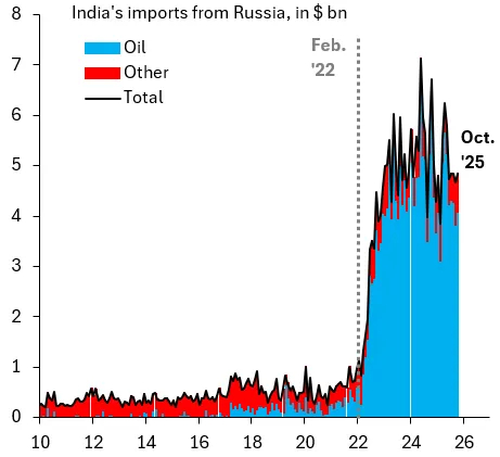 印度支持俄罗斯的力度极大俄乌开战后,印度从俄罗斯进口力度暴增,有6倍之多。增量几乎全部都是原油。一个月进口50-70亿美元,很够意思了。一个是为了买便宜石油自己用,还一个是倒卖、加工后倒卖,有便宜占很积极。一直到最新数据,都还是坚持进口。但据说后面压力太大,要大幅减少了。