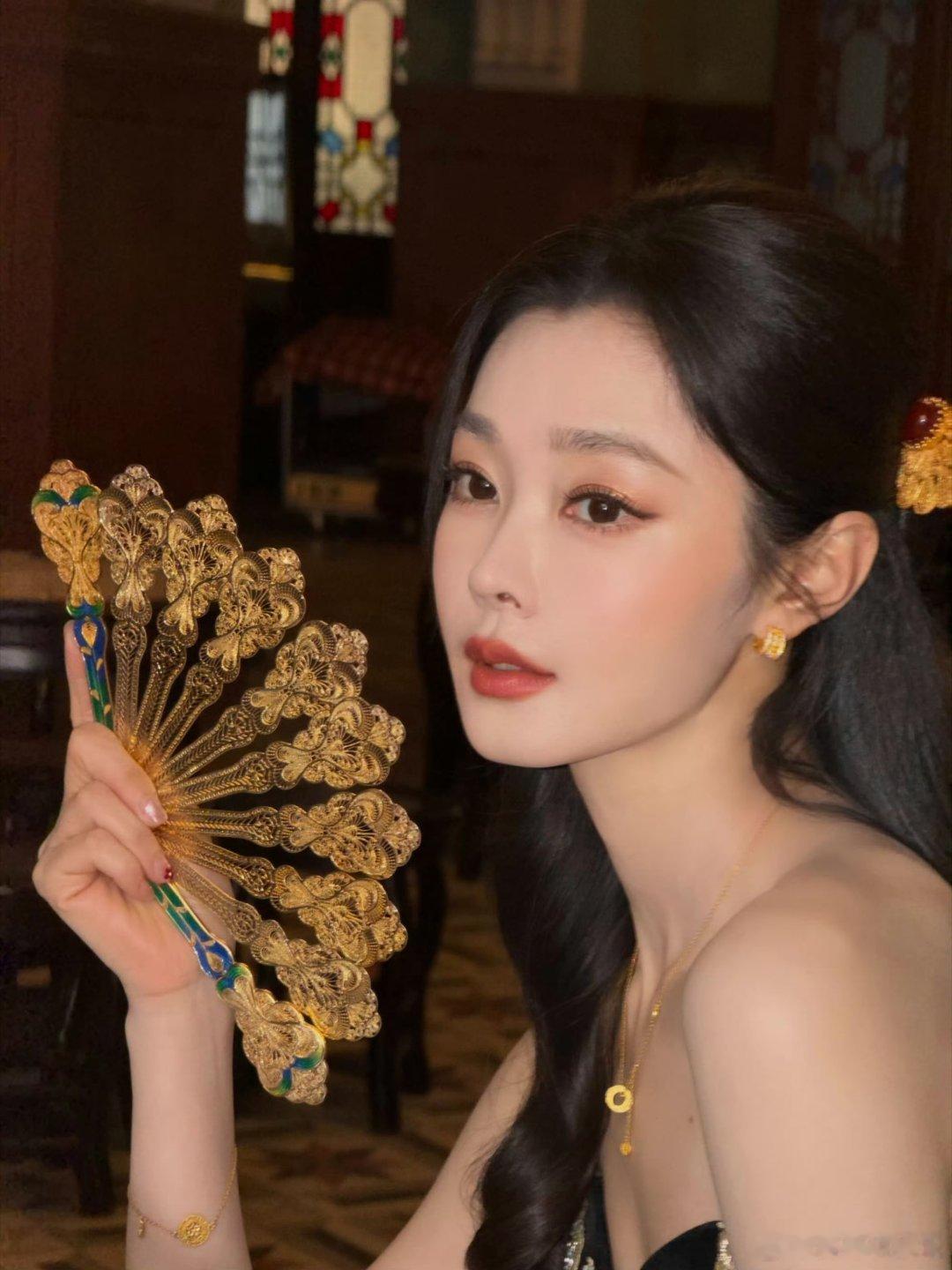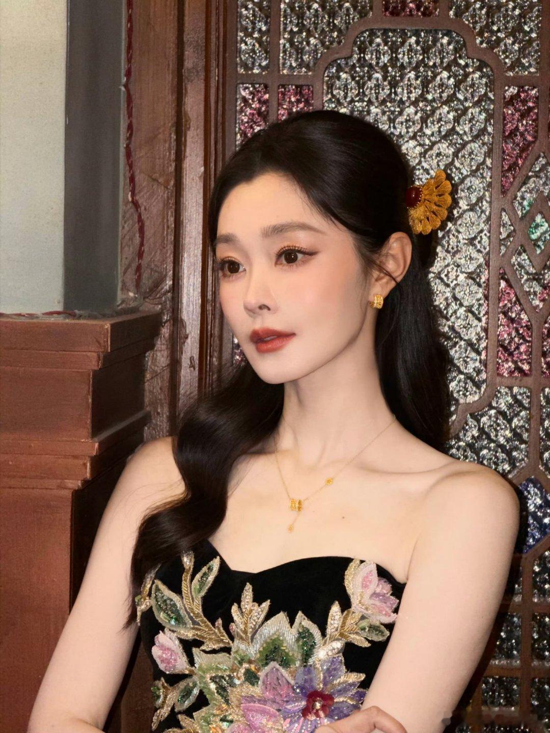 宋轶新中式美成啥样了 她的新中式造型太绝了!长发半扎温柔似水,裙摆金色纹路熠熠生辉,整个人宛如从古风画卷中缓步而来,气质满分。