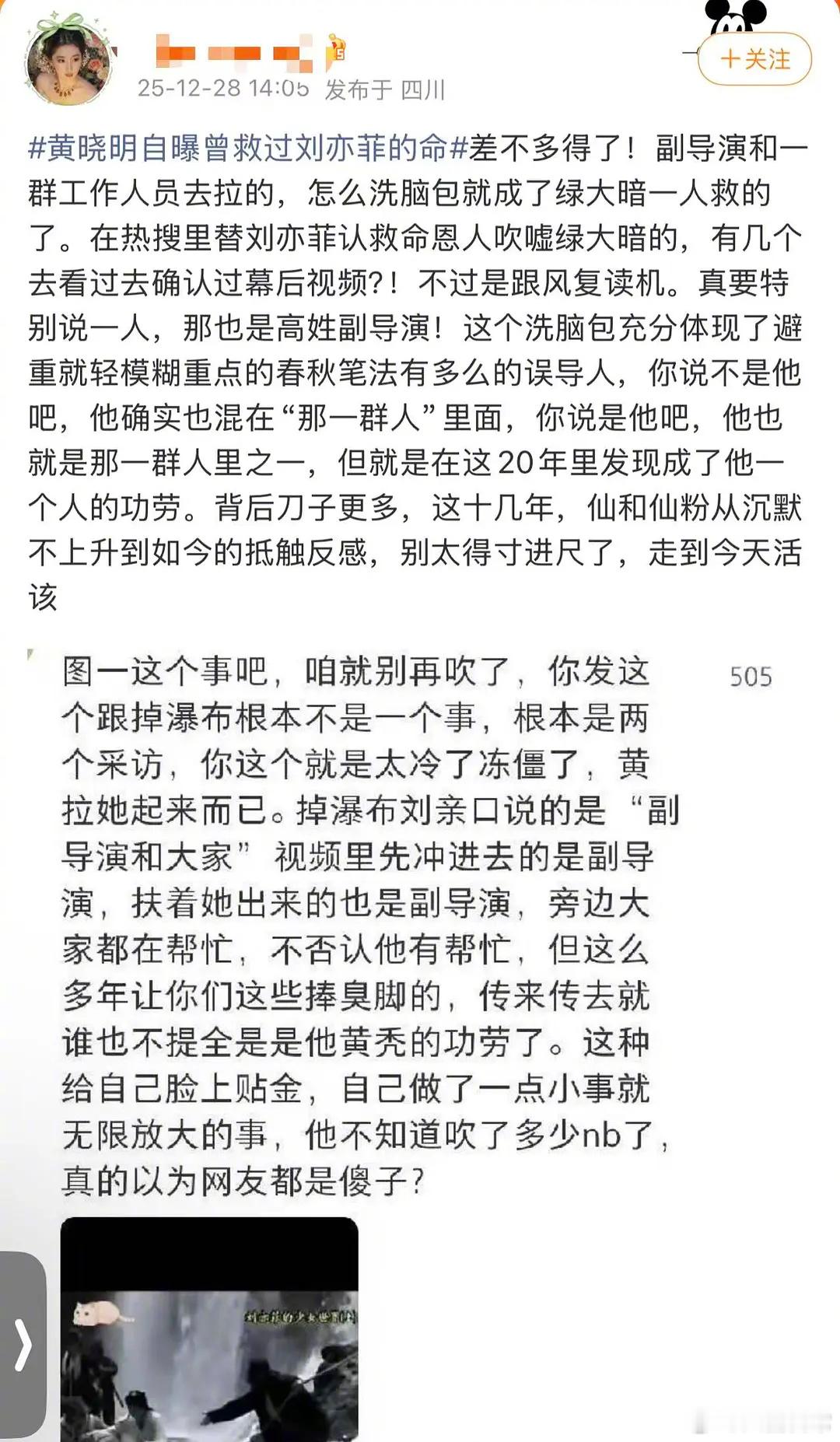 刘亦菲粉丝说不是黄晓明救的,是一位高姓副导演救的黄晓明自曝曾救过刘亦菲的命
