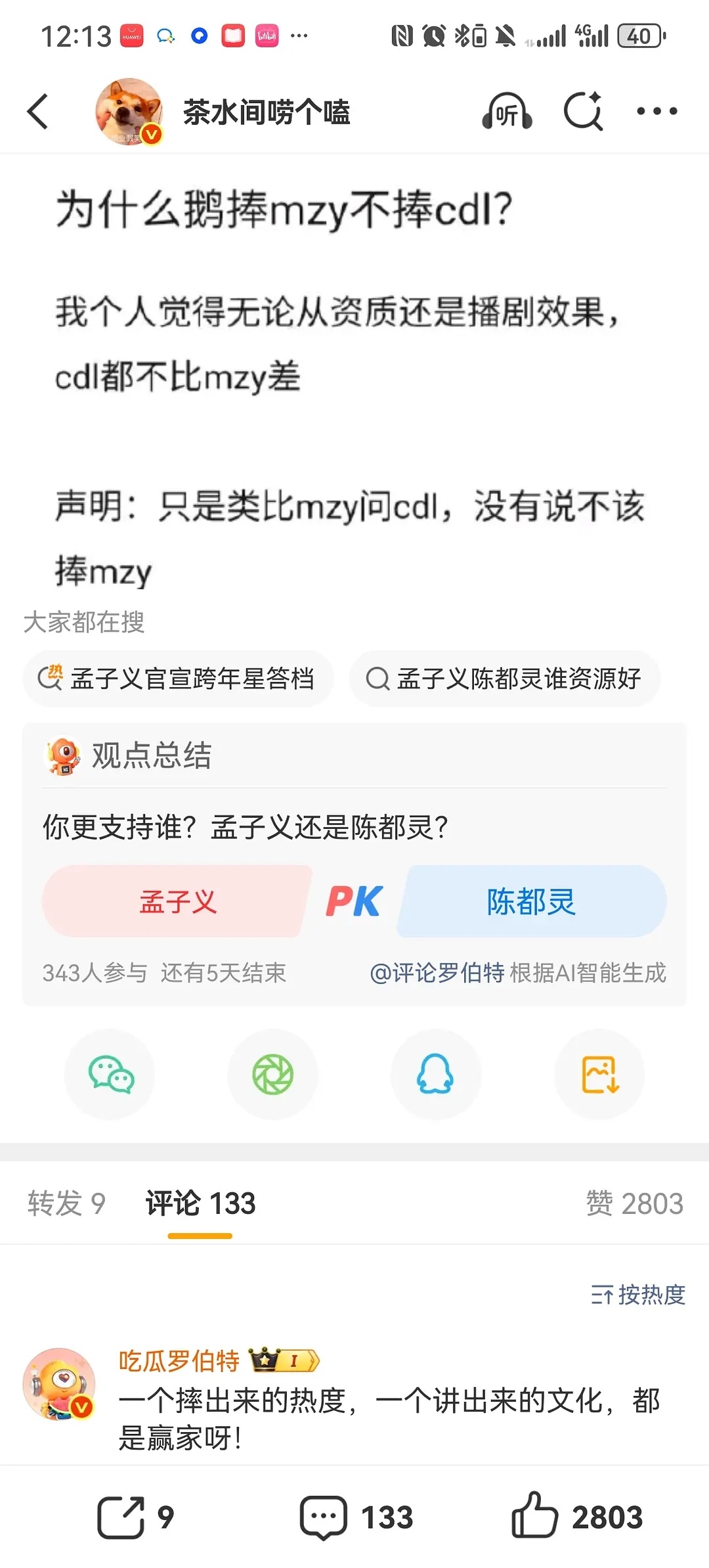 网友发帖问🐧为什么捧孟子义不捧陈都灵?罗伯特给出了答案:“一个摔出来的热度,一个讲出来的文化”