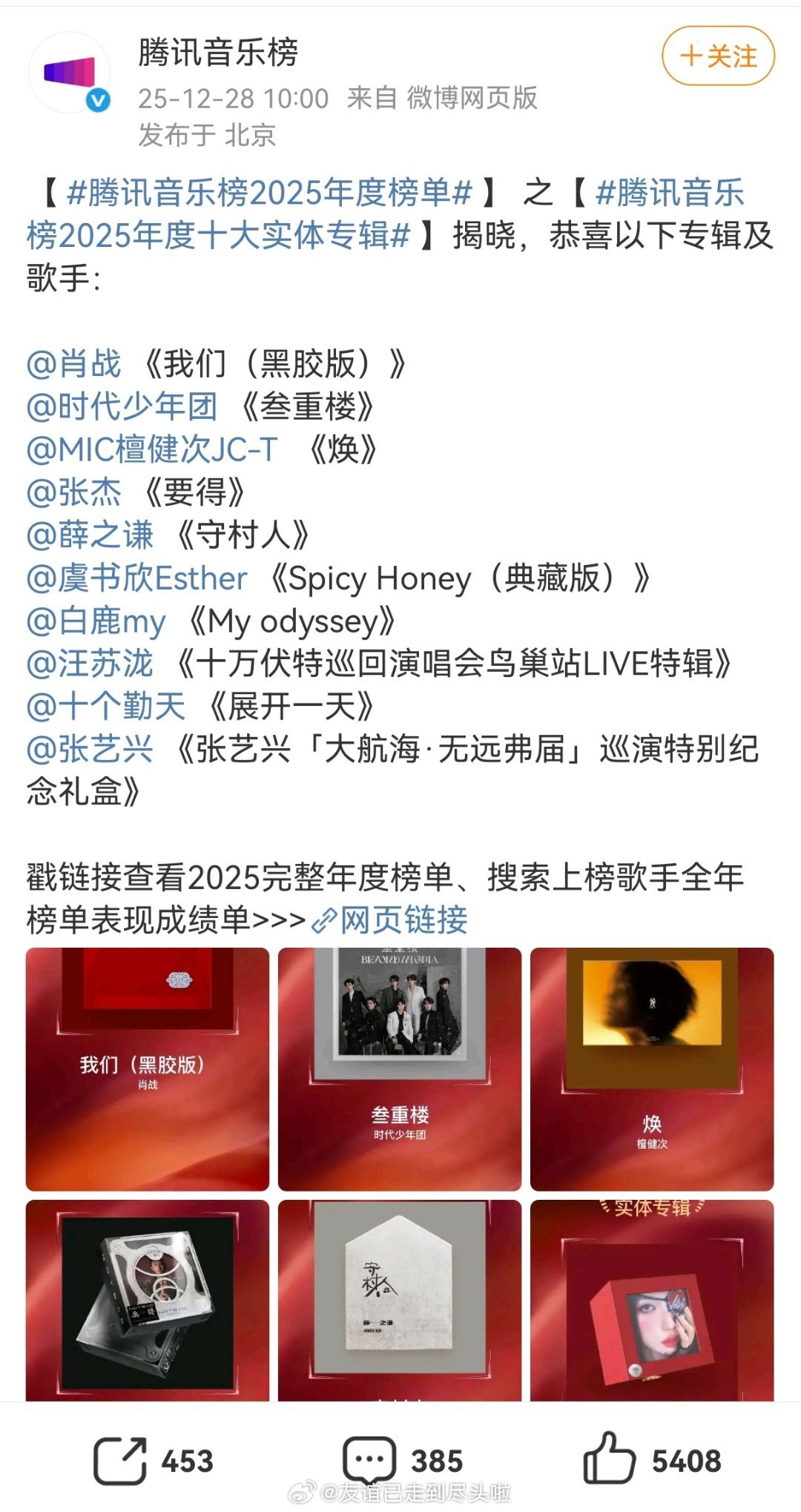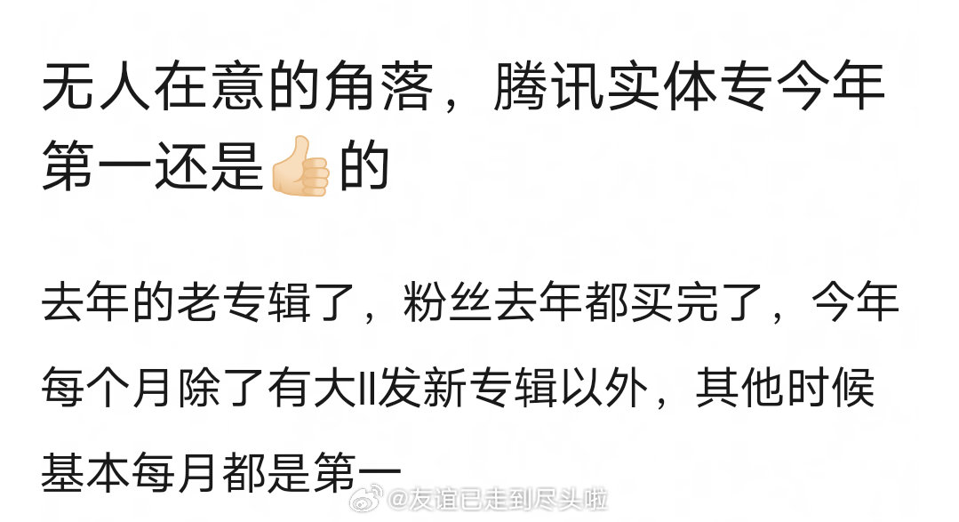 腾讯实体专今年第一还是肖战,去年出专辑在2025年还是第一,影视歌全部大爆的一年。真金白银最直接,肖战真的吸了很多新粉