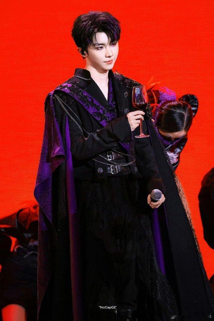 马嘉祺 吸血鬼伯爵真的被帅到了!马嘉祺的吸血鬼伯爵造型太绝了,高贵典雅的紫色完美契合神秘伯爵人设,舞台上的他自带高光,太绝了