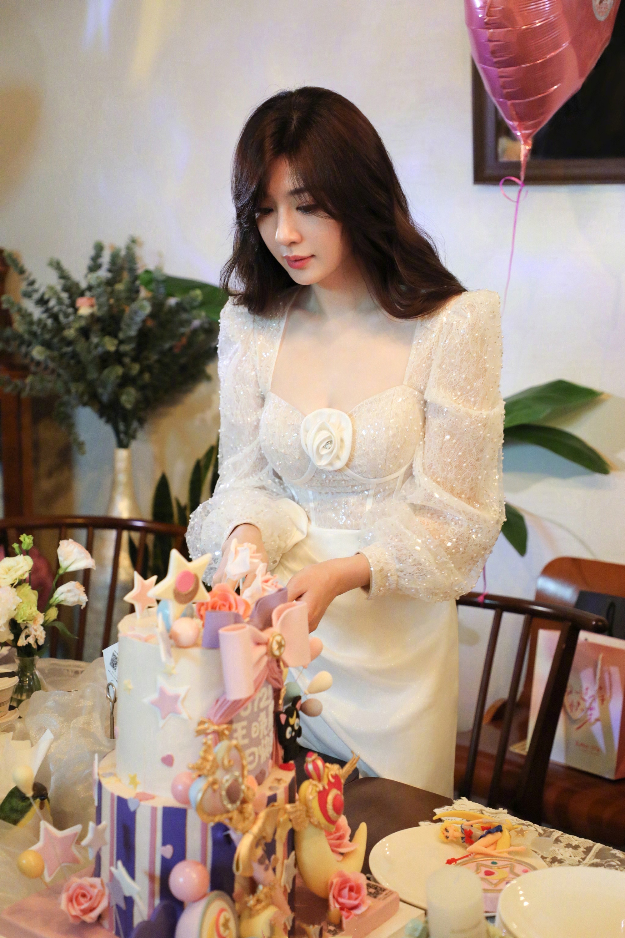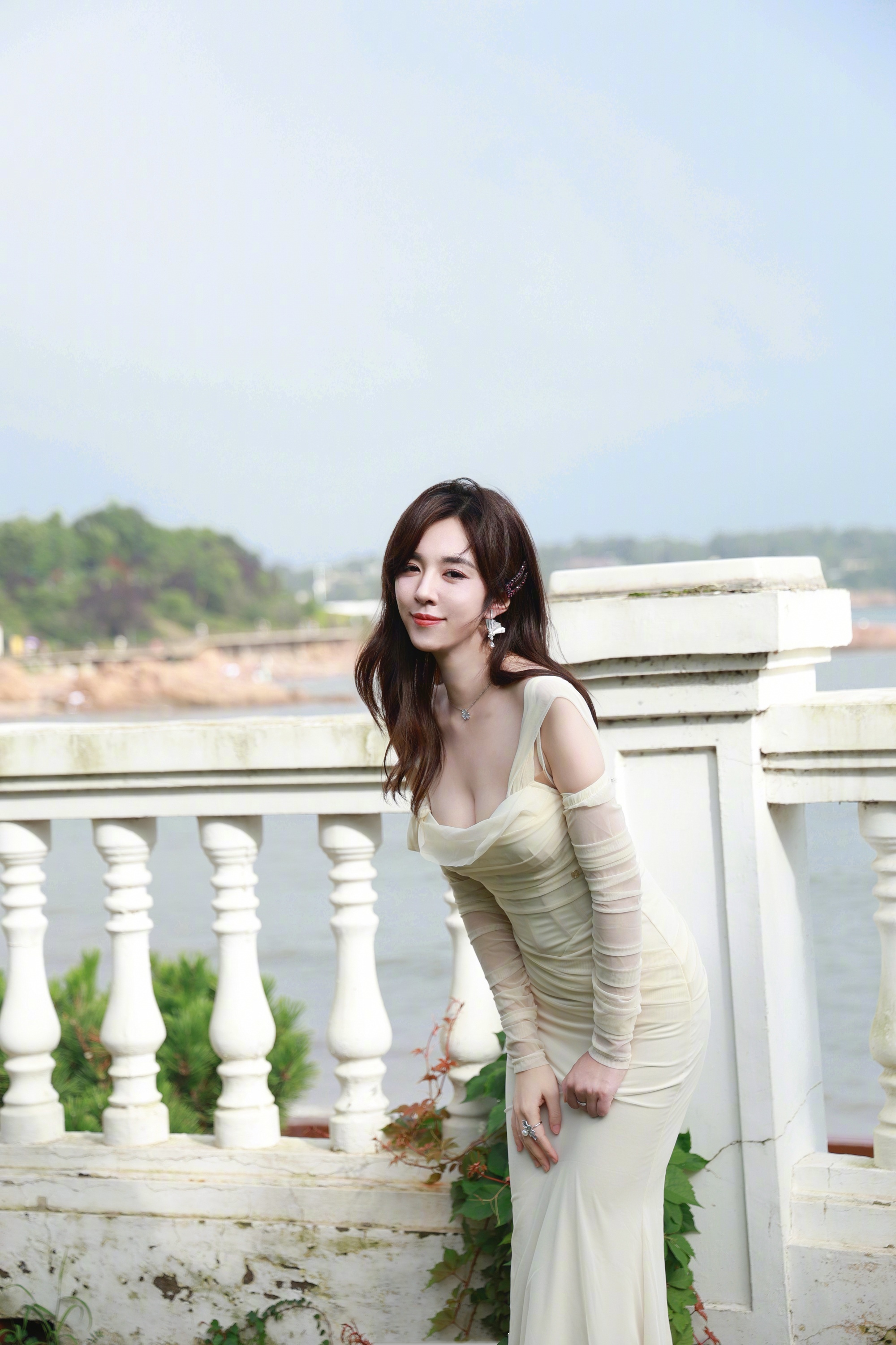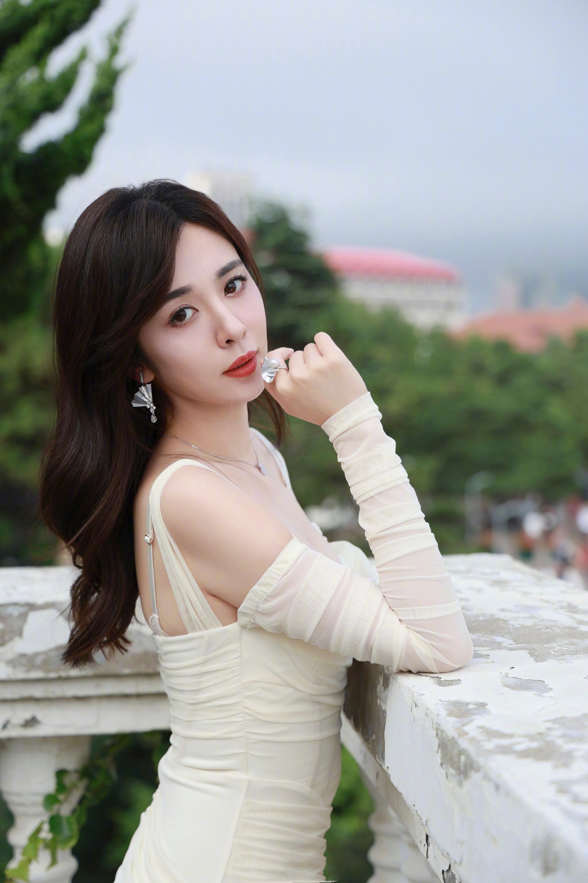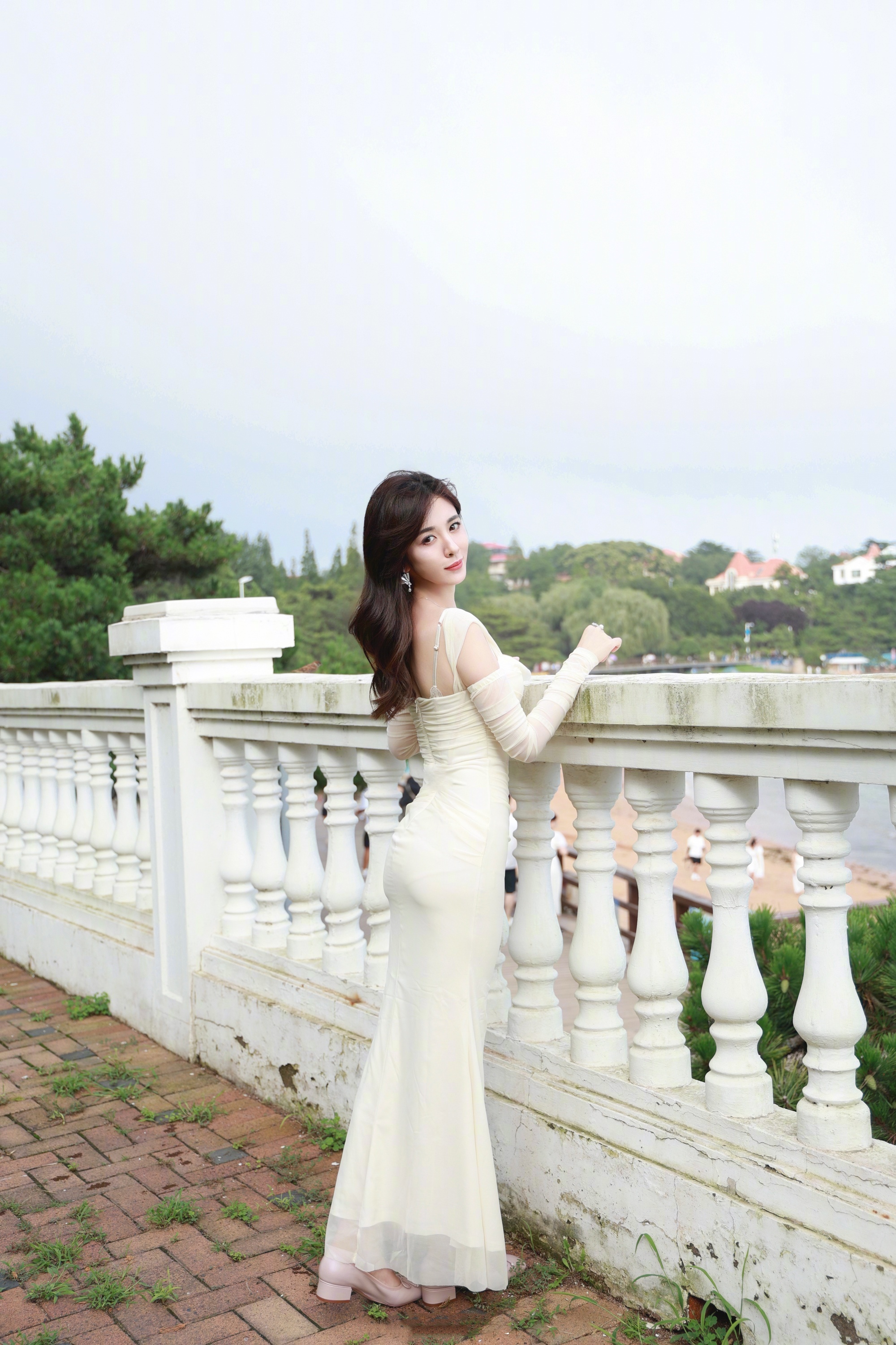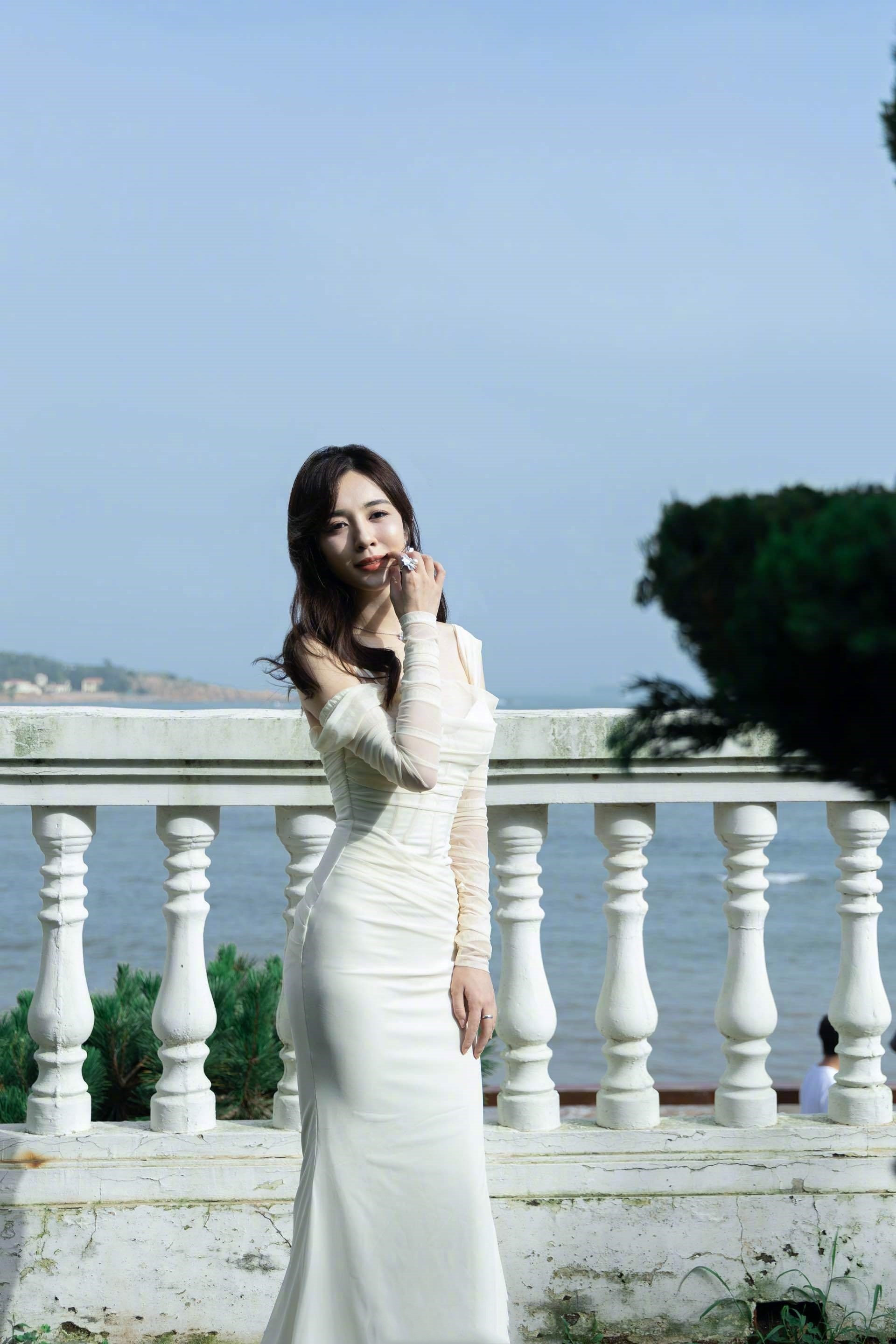 李沁,白裙高跟穿搭,三分甜美七分优雅。李沁