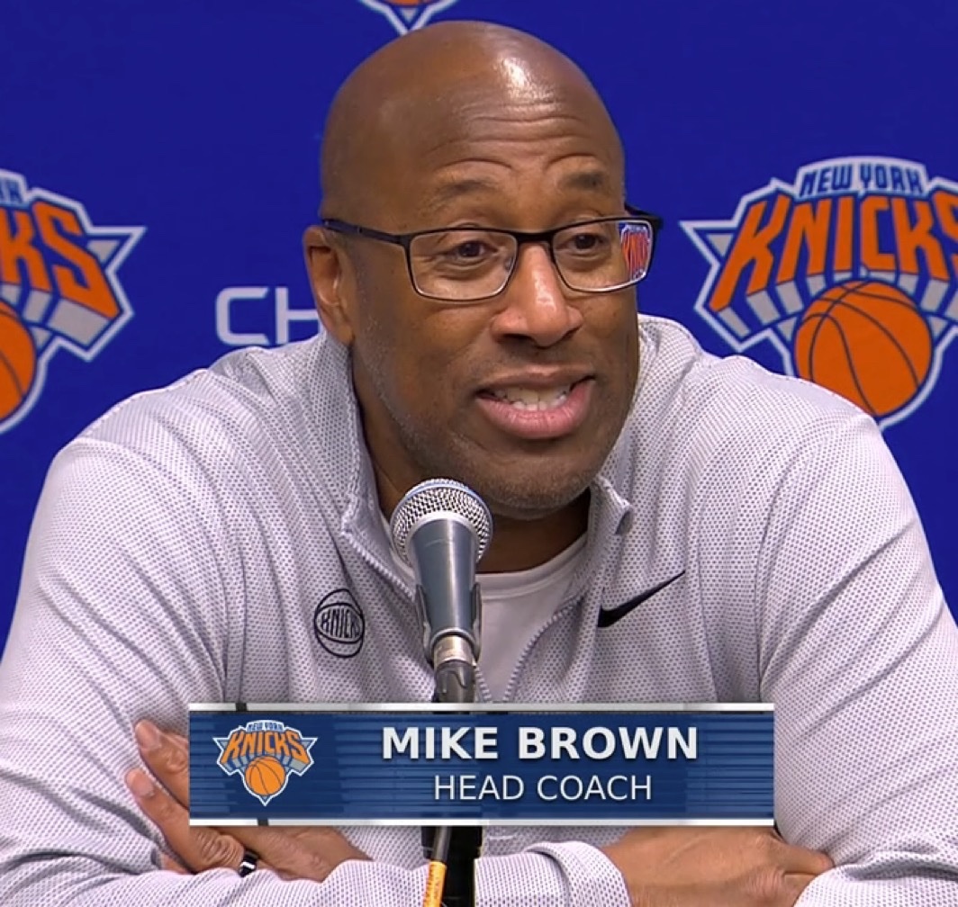 今天,尼克斯共有 9 名不同球员上场时间都至少达到了 15 分钟。在阵容多人缺阵的情况下,迈克·布朗几乎启用了他能用的全部轮换。在汤姆·锡伯杜执教的 447 场比赛中(且比赛进入关键时刻的情况下),从未出现过这样的用人情况。布朗甚至让新秀莫·迪亚瓦拉担任首发,而他平时场均只打 5 分钟。此外,他还直接把 二年级球员凯文·麦卡勒当作第六人使用——本赛季他只在 3 场比赛中出过场,平时主要在G联盟打球。