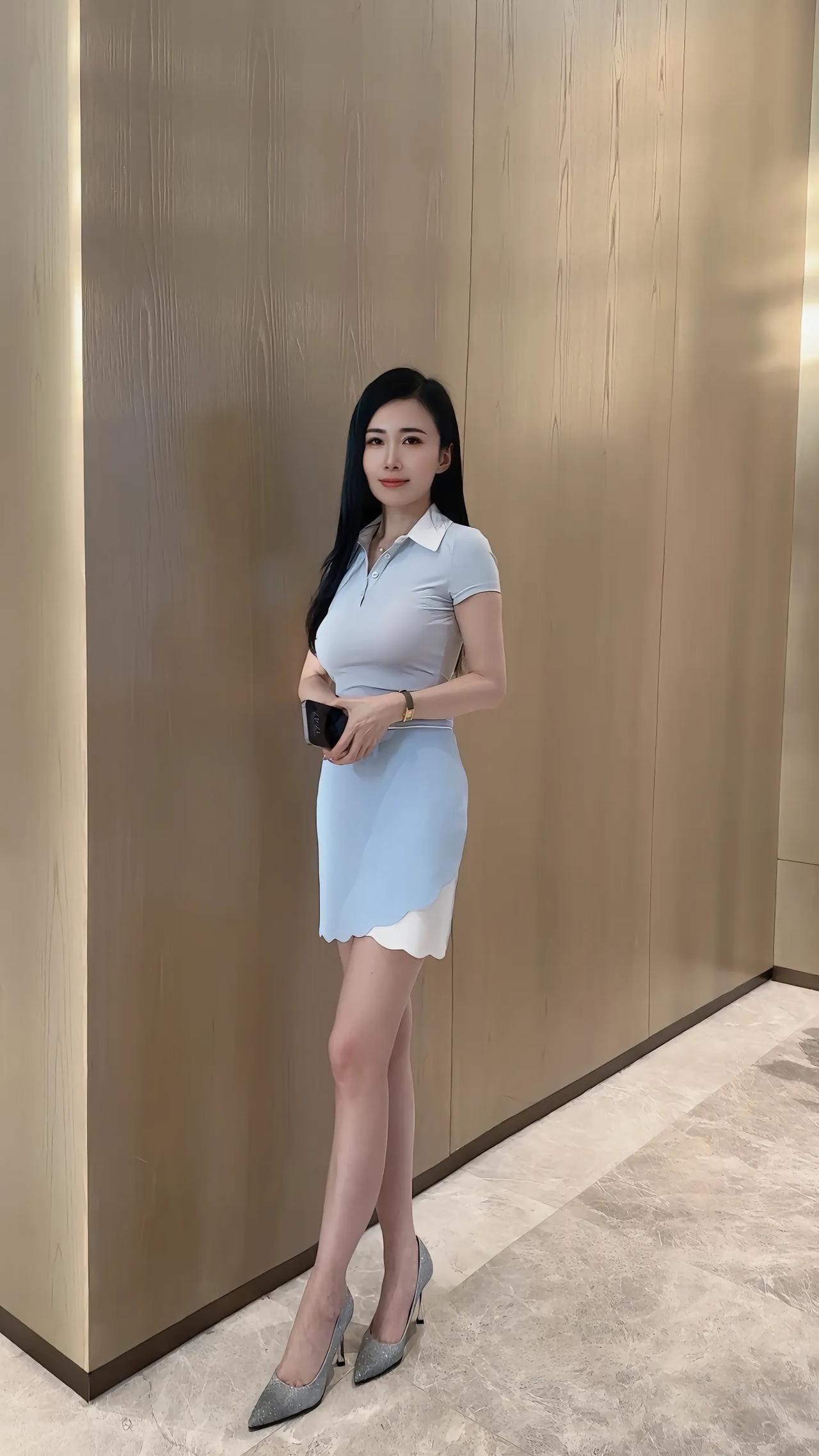 优雅气质穿搭,浅蓝色连衣裙搭配高跟鞋,尽显女性魅力!
