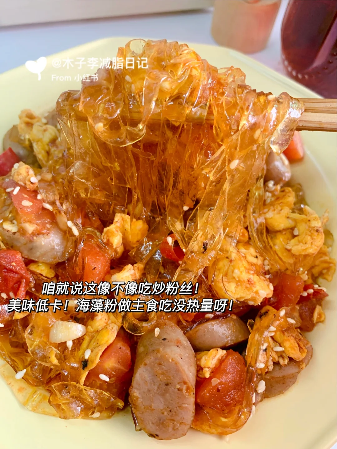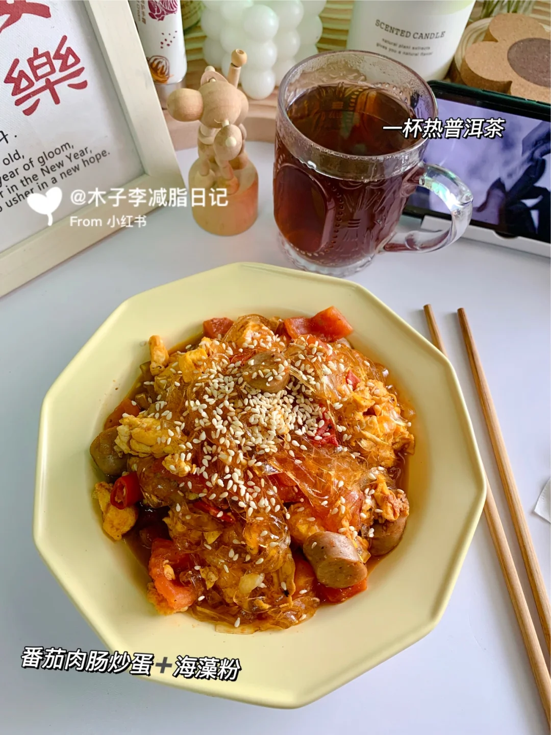 🥙午餐:番茄肉肠炒蛋➕海藻粉➕普洱茶