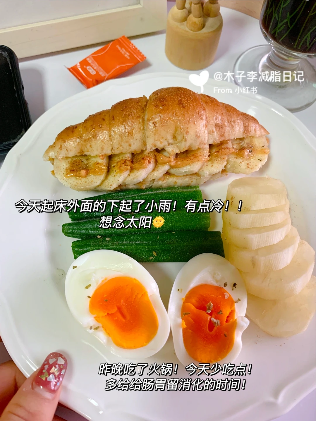 🍳早餐:黑咖啡➕海盐面包➕香蕉花生酱➕秋葵➕雪莲果➕鸡蛋➕橙腰精