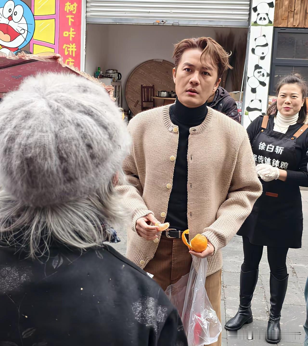 吴克群这衣服不是女装吗?看起来真的缺少阳刚之气,但是又感觉很洋气。 吴克群在街头帮老奶奶卖橘子,也是爱心爆棚。