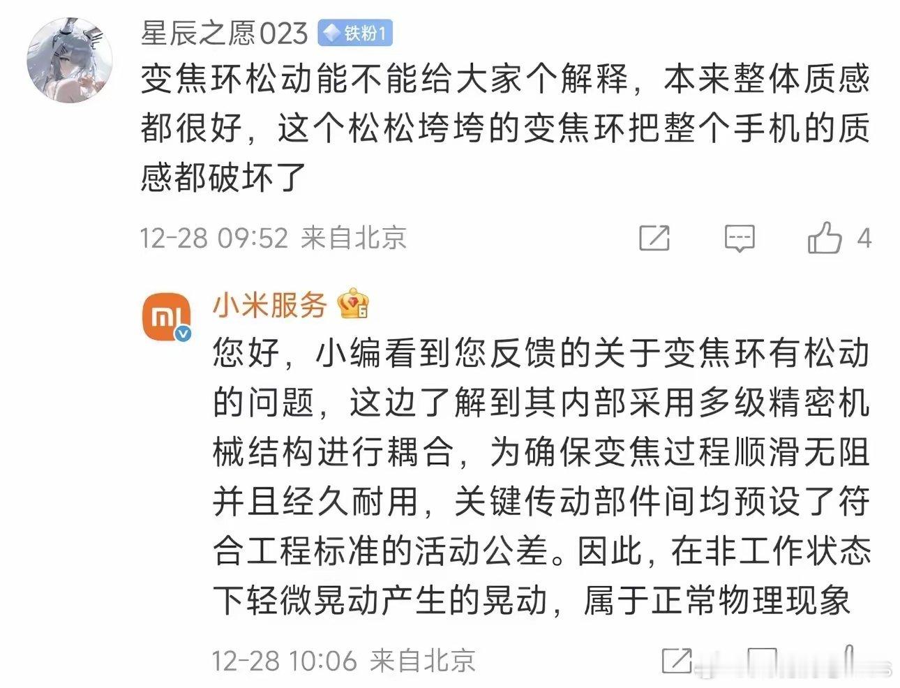小米17U变焦环在非工作状态下松动属于正常的物理现象……
