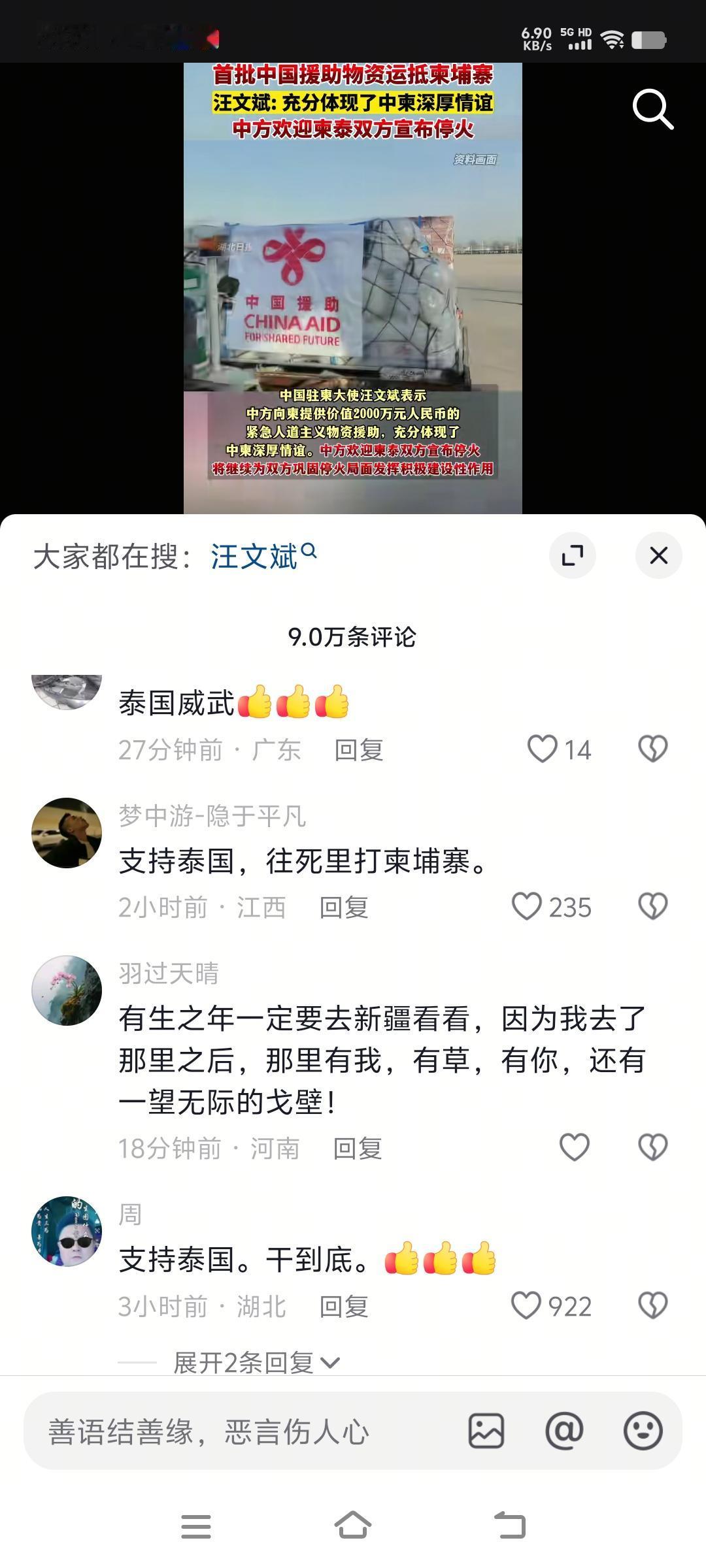 价值2000万元! 首批中国援助物资运抵柬埔寨,看到这个新闻不仅上了热榜,全国网友评论区也炸锅了。 中国不仅促成泰柬停火,还援助柬埔寨,网友们愤愤不平,一边倒的支持泰国,原因无他,柬埔寨是电诈老巢中国人恨之入骨,如今却成了被援助对象。 网友说:标题是不是弄错了,支持泰国谁写成柬埔寨。 这是啥情况呢?有没有懂的分析一下。