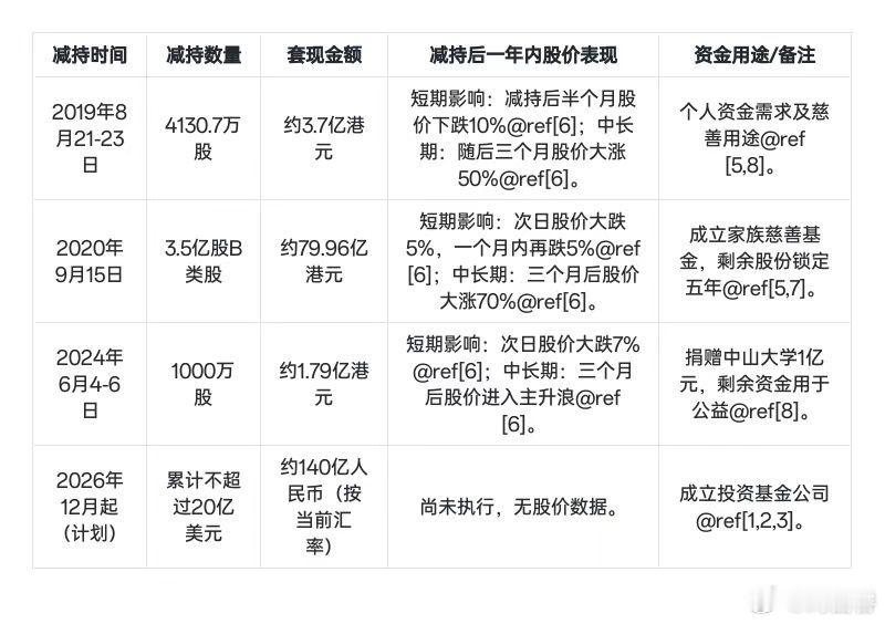 有人归纳斌总减持的记录和后续股价表现能看出这不是斌总第一次减持,每次减持后短期确实下跌,但三个月后都会涨回来 而且涨的更多所以大家真的不要恐慌,相信小米 相信雷总!