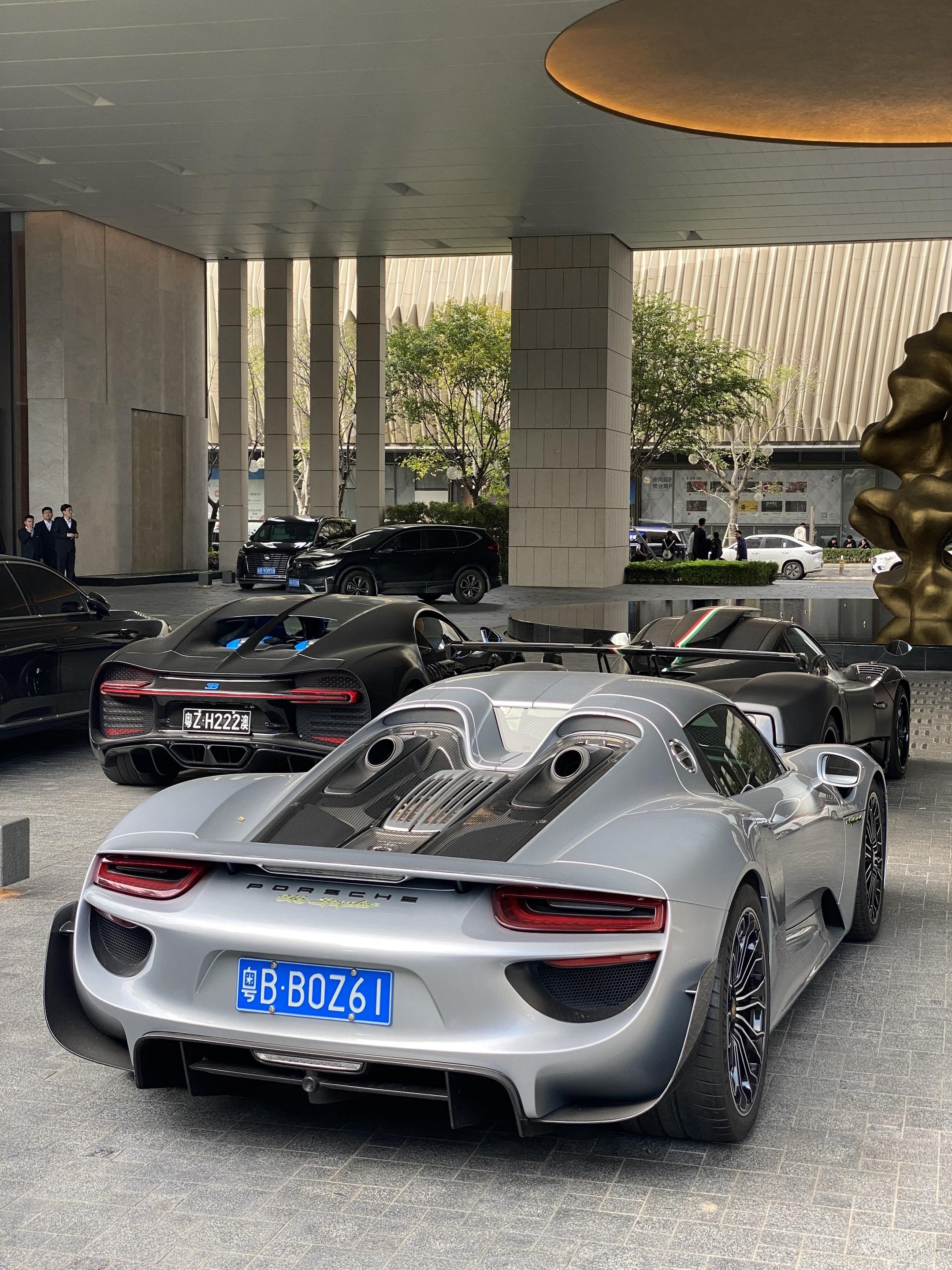今日深圳某个角落的名场面 zonda ab,chiron,enzo,918spyder😍车迷的大饱眼福。超级跑车