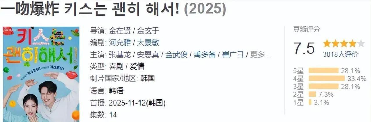 最近,韩剧圈子里一部叫《一吻爆炸》的浪漫喜剧火了,开播才半个月,就冲上Netflix全球非英语剧集排行榜首位,热度直逼热门悬疑剧。根据韩国影视数据平台最新统计,这部剧的全球播放量已超2亿次,豆瓣评分稳定在7.5分以上,观众黏性高到很多人一口气追完8集。 故事发生在阳光普照的济州岛,女主角高多林是个30岁失业大姐,五年来总在公务员考试边缘挣扎,日子过得灰头土脸。妹妹瞒着家里说她在国外高就,急忙买机票把她打包送走避风头。多林气归气,还是乖乖飞了过去。没想到,岛上邂逅男主角孔志赫,一个不靠家底自己创业的富二代,他正为公司项目需假扮情侣拉拢一个技术大牛——巧了,那家伙竟是多林的前男友。 两人一拍即合,从假牵手到真亲吻,只用了一天,节奏快得让人脸红心跳。晚宴上,多林为圆谎豁出去亲了志赫一口,烟花正好绽放,浪漫指数爆表。前男友想旧情复燃还动手动脚,被志赫英雄救美般揍飞。更甜的是,多林不小心落海,志赫二话不说跳水救人,俩人湿漉漉上岸后,感情直线上升,酒店里直接进入成年人的亲密模式。 这部剧抛开韩剧常见的阶层拉扯和虐心桥段,直击本质:爱情就该简单直接,假戏真做间自然点燃火花。虽有巧合,但正中观众痒处,轻松解压又带点现实幻想。数据显示,类似甜宠韩剧今年播放增长30%,证明大家需要这种接地气的浪漫来充电。如果你正愁追剧无门,这部绝对是解药,甜到齁却不腻歪