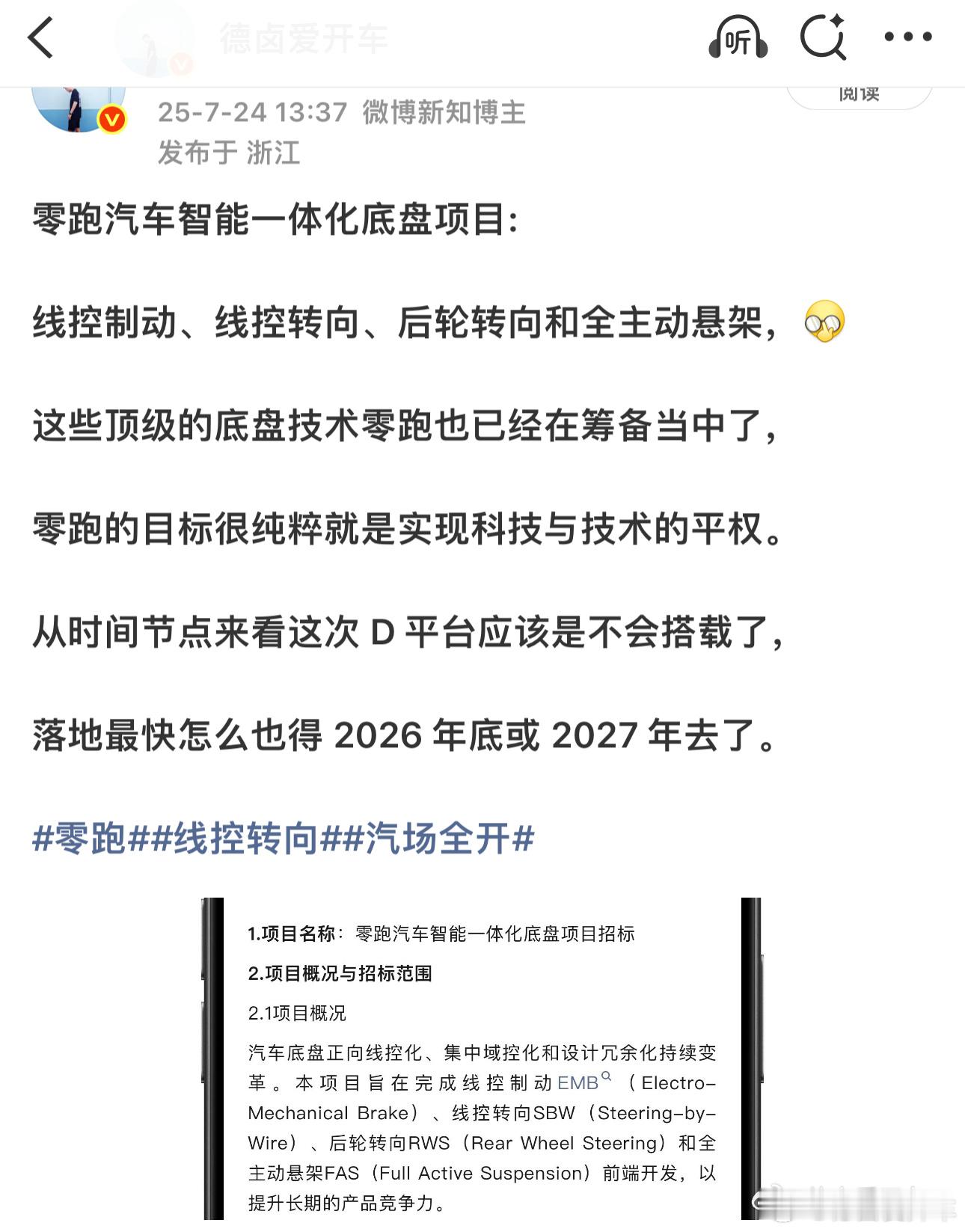 到今天发布会零跑D平台技术已经基本清晰了,今晚朱总也提到了零跑的新物种车型的存在,从时间点来可能会搭载这些智能底盘技术,大家有的、或者没有的,零跑反正会有。零跑汽车十周年新能源汽车