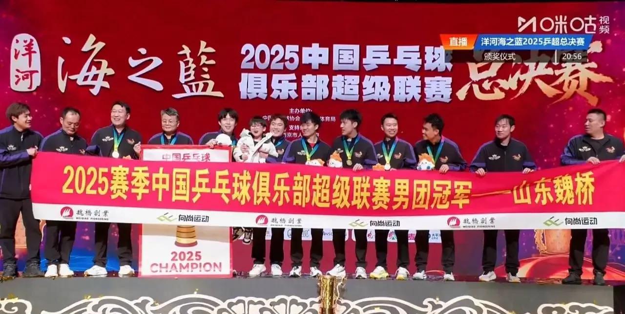 山东魏桥男队, 夺冠说明了什么? 说明: 他们的综合水平 确在各队之上; 王楚钦、梁靖崑 包括林昀儒, 整体的技战术 更强劲, 且经验丰富; 特别是: 大头、大胖 均为带伤出阵, 体现出 可贵的职业精神 决赛中, 大头3:1击败了 对方头号主力向鹏; 而大胖与台林 配合默契 零封黄石基地的 薛飞/刘冠成, 为最终胜利登顶 立下汗马功劳! 向他们祝贺; 同时, 也致敬亚军: 黄石俱乐部队, 顽强拼搏, 战斗到最后时刻; 继续加油, 期待明年的 乒乓精彩!