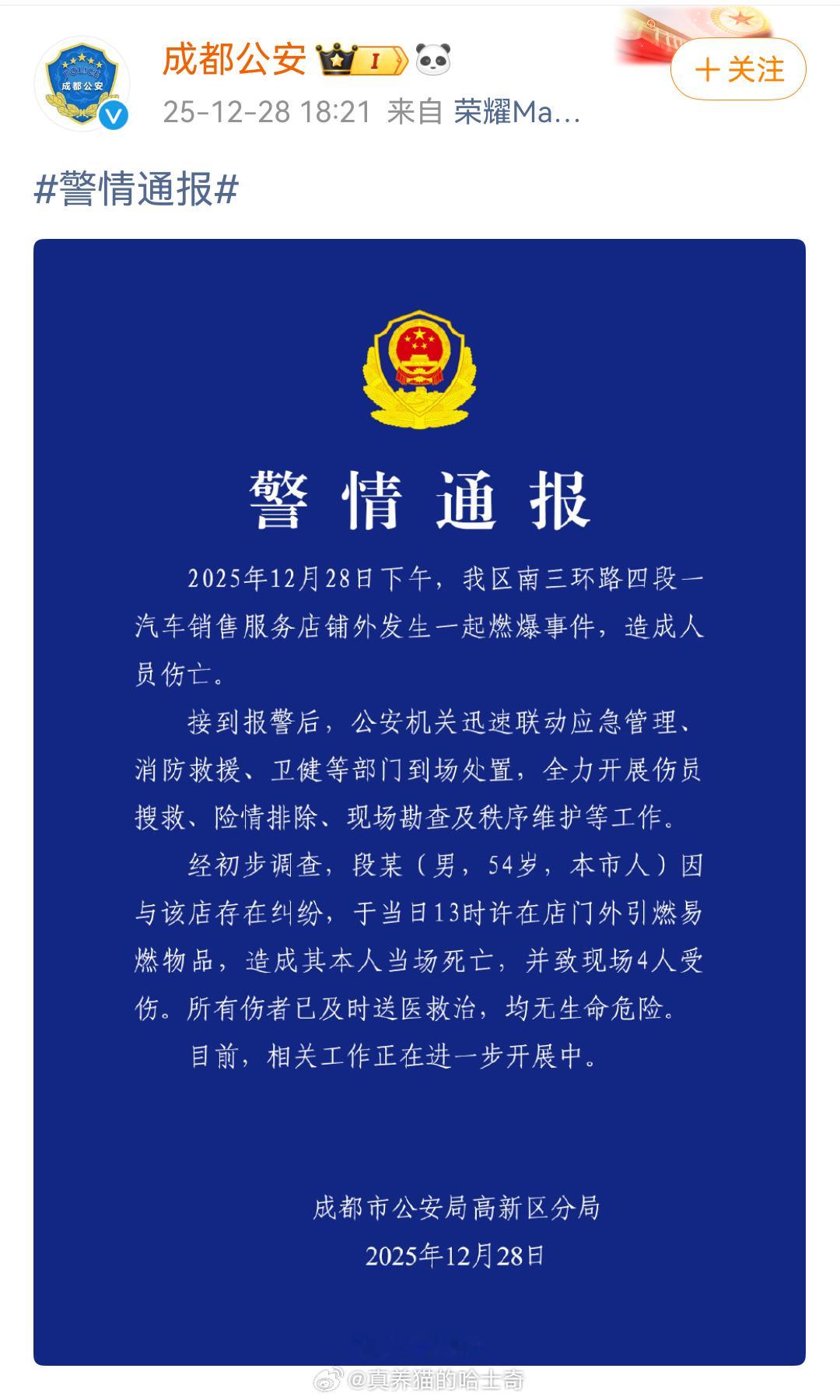 四川成都丰田4S店事情的警情通报出了这是什么仇什么怨呀