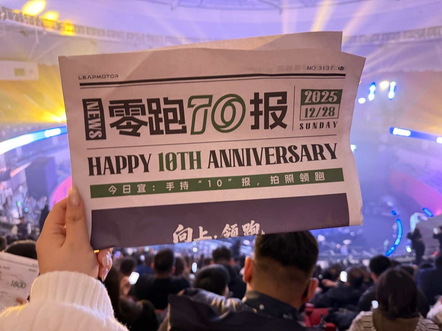 零跑你真的不是演唱会吗,现场氛围也太好了吧,还有摇镜头抽奖环节!!每个座位都配了一个超级百搭帆布包,里面还放了小零食,零跑你有点太宠我了而且这个报纸也有奖~家人们觉得这个小西能这么幸运吗零跑10周年发布会