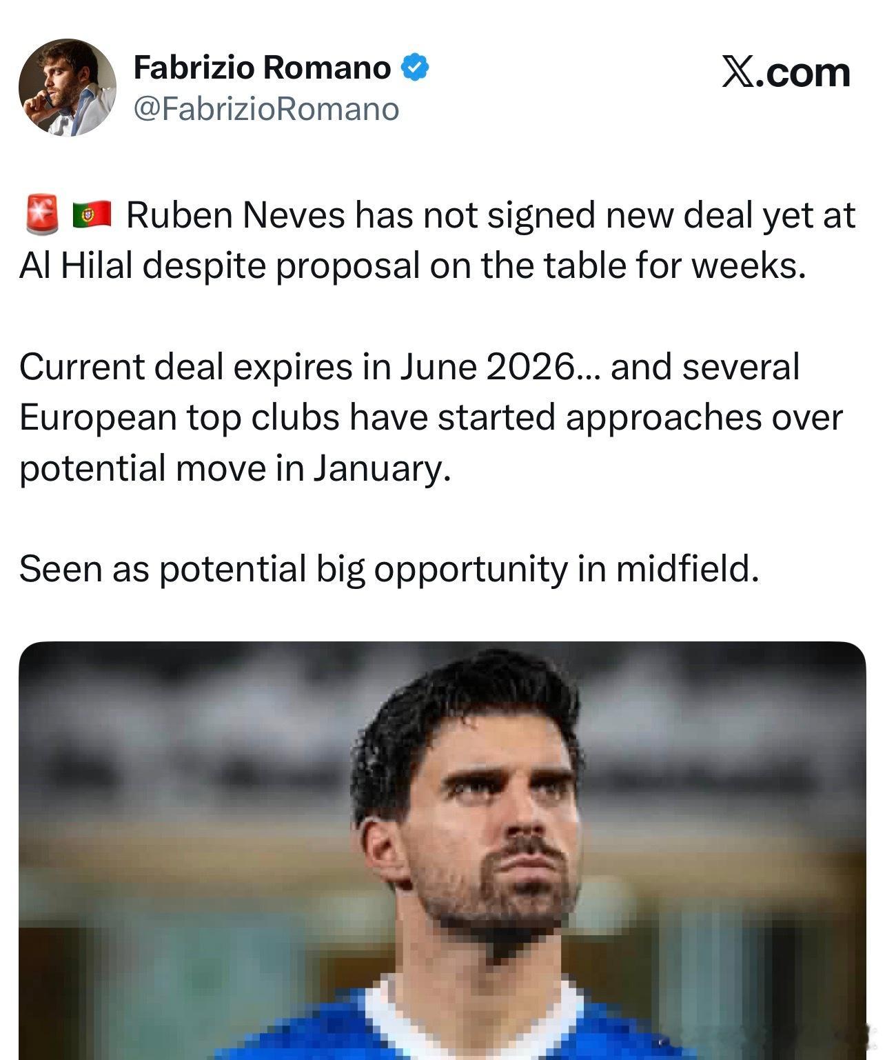 28岁,合同明夏到期的内维斯,一些欧洲顶级球队已经开始就冬窗引进他进行接触了,一个很好的市场机会主义。看看后面会去哪里