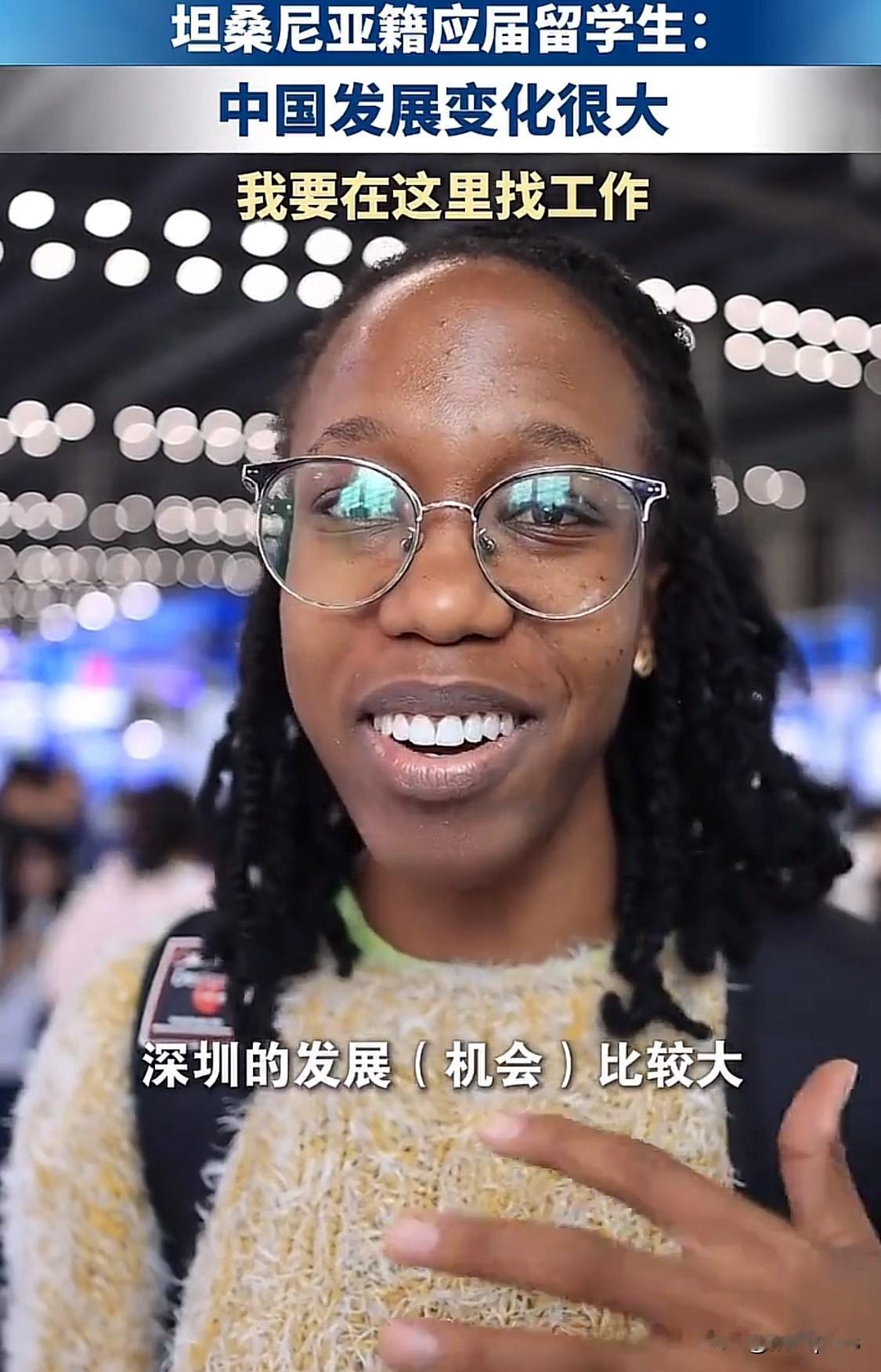 坦桑尼亚留学生接受采访时说,要留在深圳找工作。她说“深圳发展很大”,想留在这里找管理与工程师的工作。 这名非洲坦桑尼亚留学生是哈工大的毕业生,她在中国留学,她表示自己想留在中国工作。她说她学的是工商管理,想找“管理与工程师”的工作。 可以看到,这名坦桑尼亚学生的中文“基本”可以表达自己的简单想法。字幕在一些地方需要加括号来补全她的意思。 可能留学生在校园锻炼汉语机会比较少,所以她说的不太流利也可以理解。 但也有网友认为,在汉语社会,这名坦桑尼亚留学生的汉语水平还是“基本”的、马马虎虎的,她可能会面临很大的竞争。