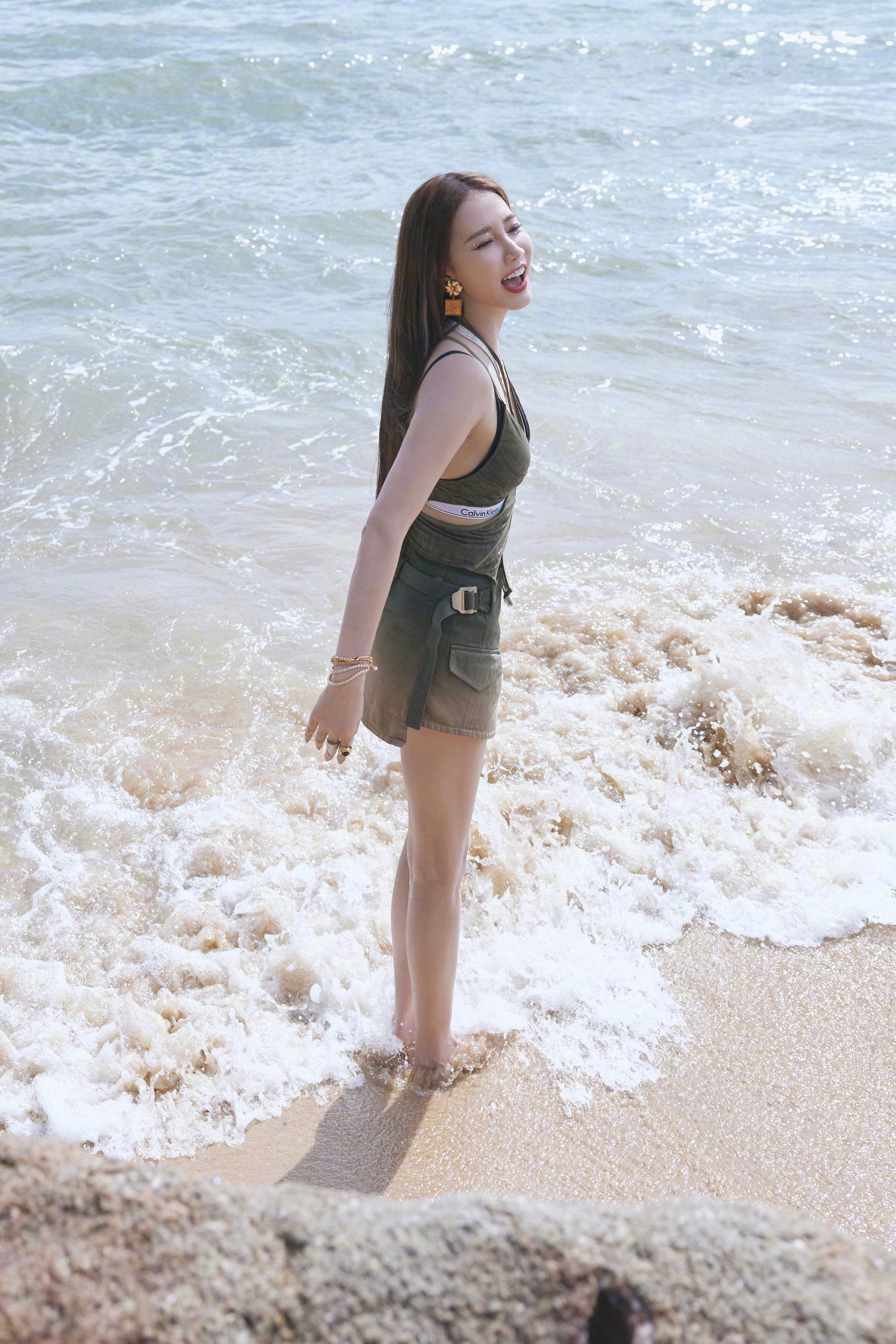 吴艳妮在成都穿着短裤大腿看起来很粗壮,表情自信又张扬