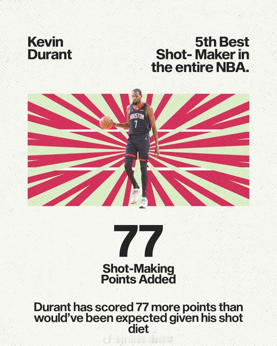 37岁的杜兰特依然是NBA第五好的投篮手。杜兰特休斯顿火箭篮球年末狂欢季