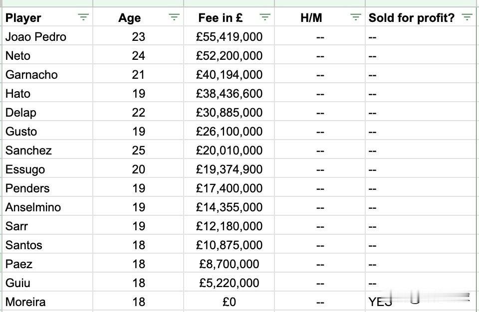 切尔西近年仅凯塞多和帕尔默称得上“成功引援”,高价签约球员的“命中率低得离谱”。而囤积年轻球员的“七年长约”模式,让球员难获稳定出场机会。 有统计表明,自体育总监温斯坦利上任以来,切尔西的42笔引援中,仅3笔真正成功。93%的引援效果不佳或影响甚微,部分尚待观察。 累计投入12亿英镑,其中89%用于引进25岁以下球员。 这些引援中仅有6笔实现盈利出售,4笔造成亏损。 然而,要实现球队的长期目标,马雷斯卡需要更多世界级球员的支持。是时候做出改变了。