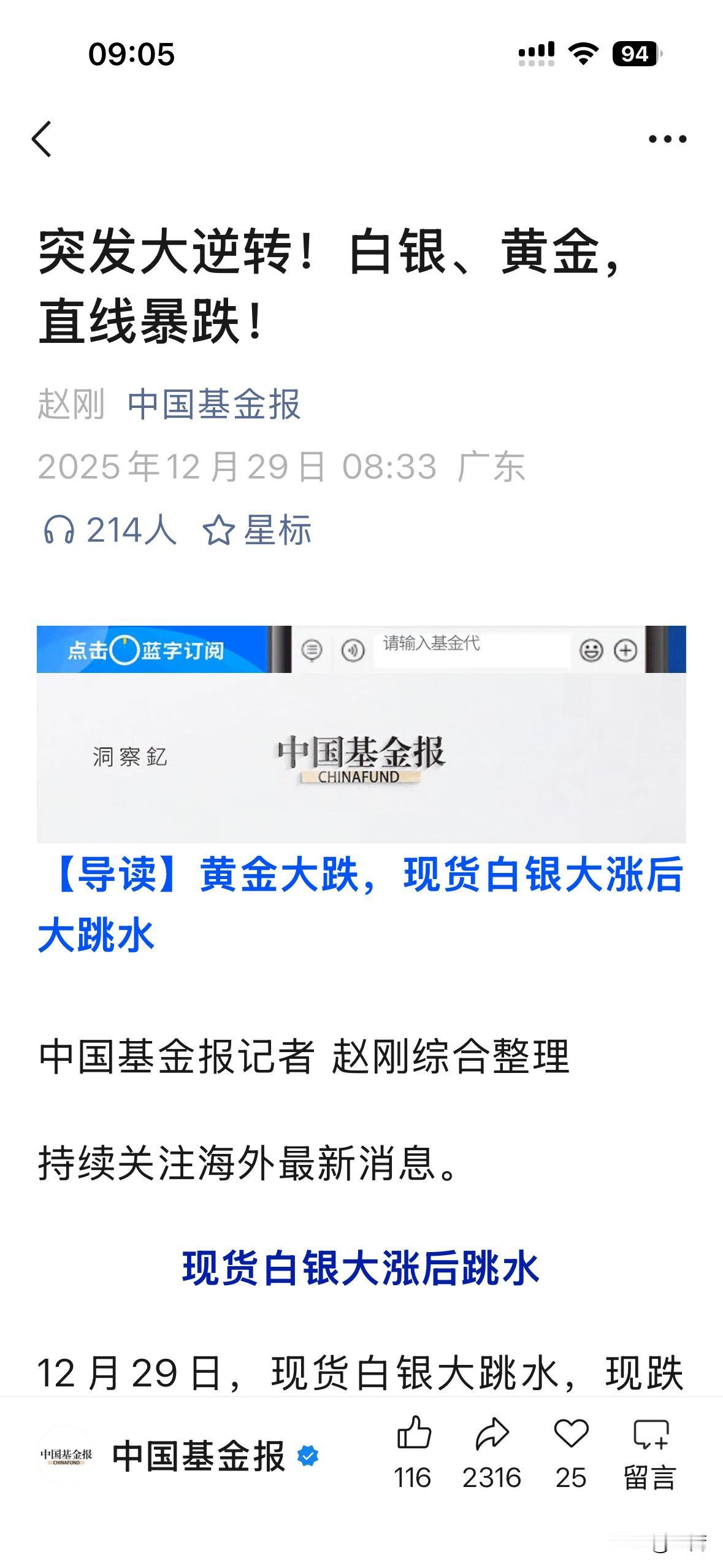 昨晚才看到吹黄金白银涨幅迅猛的消息,今天早上一看现货白银大跳水,现跌近5%,此前一度涨近6%;现货黄金失守4500美元关口,现跌近1%。 这样刺激的疯牛行情也够炒家们疯癫的。 你们要买金买银,把账户的数字换成金银放家里,体会那种沉甸甸的幸福,那我们就祝福你们吧。