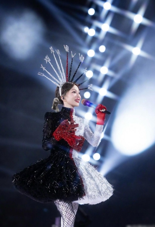 张韶涵的造型师是真的有点东西的,不单单在服装上下功夫,连头饰都做得如此精美,让张韶涵从头美到脚。