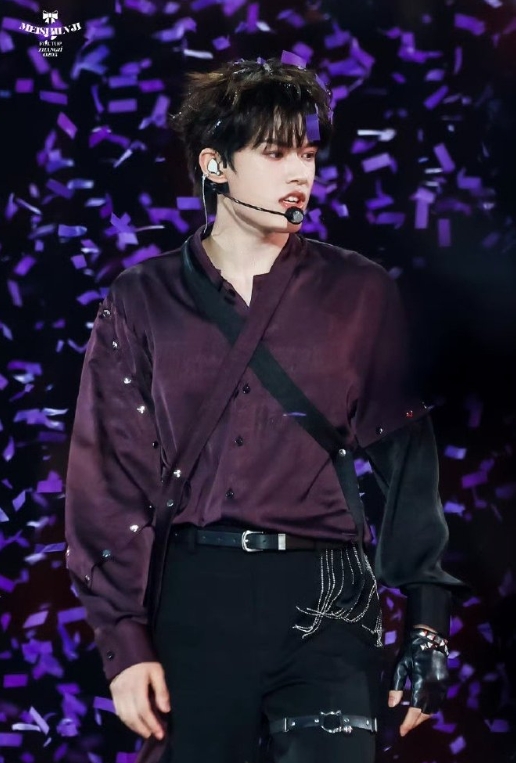 紫气东来,氛围感拉满!张极这套新音造型,紫色衬衫自带矜贵与神秘气息,而腿环的加入瞬间打破常规,增添一丝不羁与舞台张力。他将这两种气质完美消化,用身材和表现力诠释了什么叫“行走的画报”。