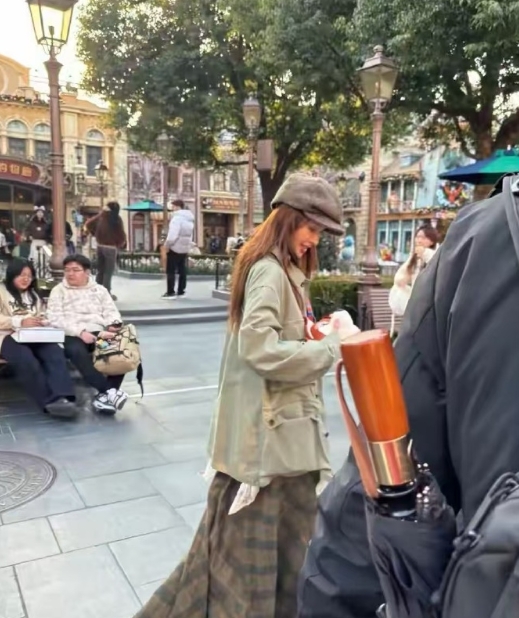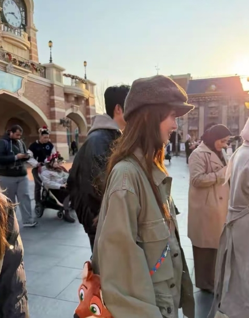 金晨迪士尼被偶遇,背着狐尼克的包,穿搭时尚