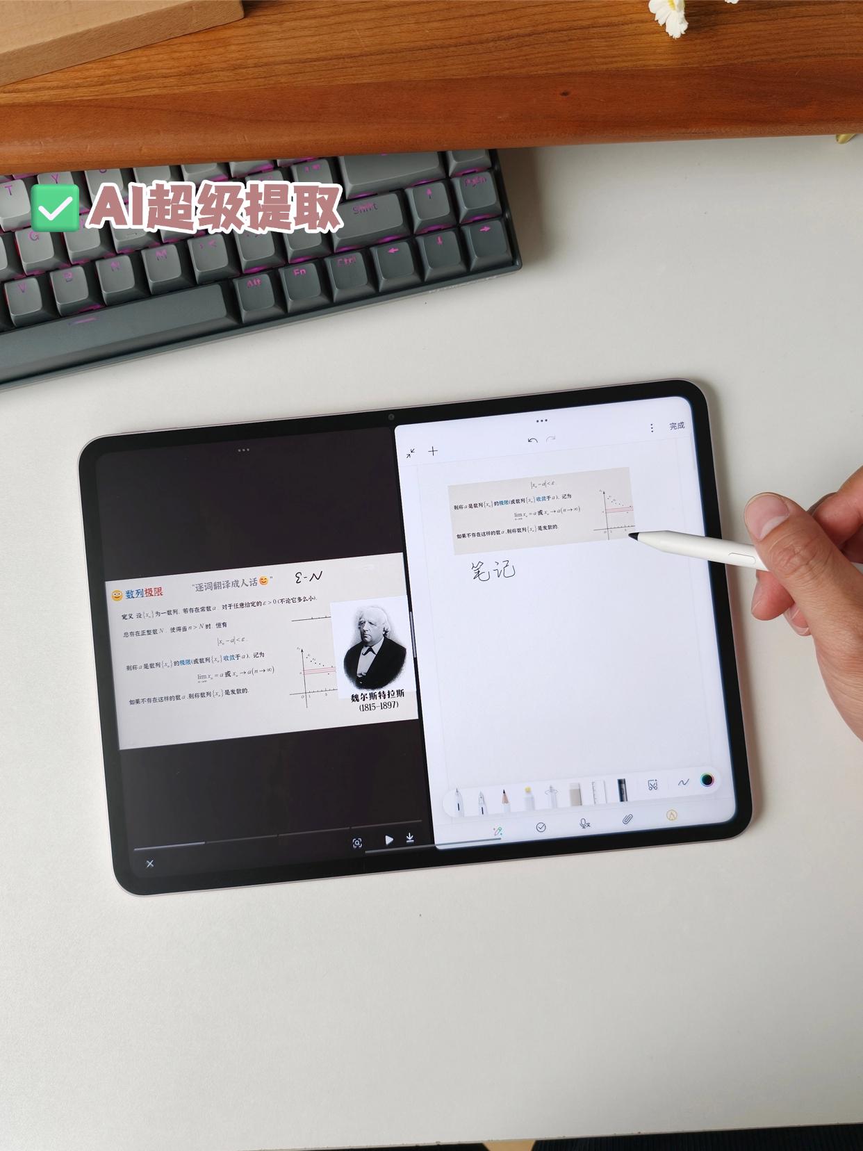 无纸化学习|好爱OPPO平板这几个功能! 之前还不理解有些人拿平板学习,现在入了OPPO Pad Air5就狠狠爱上了,用上之后学习效率嘎嘎涨啊! 刚好期末,拿着平板一边刷网课一边分屏记笔记,才终于懂什么叫无纸化学习。而且OPPO这个不单是你自己手写记笔记的,遇到重点题型可以用AI超级提取截出来,转到笔记上,比自己手写快多了 而且也不用担心自己不喜欢平板写字,它有AI字迹优化功能,写的字系统会自动帮你优化,不用担心过几天看不懂自己写的啥 我是专门挑的柔光屏版的,屏幕不容易反光,在室外看都很ok,观感会更像纸一点,平板这种带出门的产品还是柔光屏的好,而且看久了也更不会累,更护眼 感觉学生党是真的很需要OPPO Pad Air5了,最近刚好还有国补,首销入手还送手写笔和壳子,再省个几百的,划算的嘞~