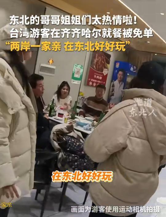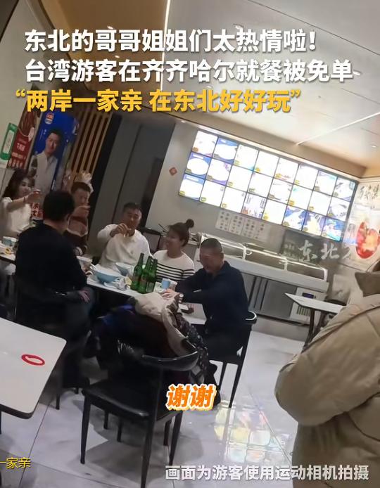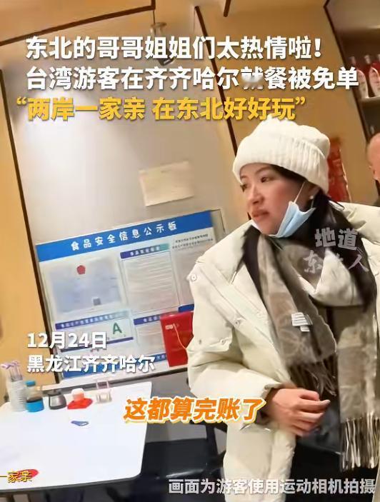 格局打开了!两名台湾女生到齐齐哈尔旅游,在餐厅吃晚饭准备买单时,却被老板告知:你们这桌都算完了!她们这才知道,原来单子被邻桌几位大哥大姐给买了,在表达感谢时,一位大哥表示:两岸一家亲,回祖国,天天拥抱你们!   孙女士(化名)和她的小闺蜜趁着难得的休息时间,决定来一趟齐齐哈尔旅游,享受一下北方独特的气候和风光,她们在网上查了些推荐的景点和餐厅,计划通过这次旅行放松身心,到了齐齐哈尔,她们享受了一整天的游览,最后在一天的疲惫中,选择了在当地一家有特色的餐厅吃晚饭。   这家餐厅环境温馨,装潢典雅,显然很有当地特色,她们点了几道当地的美味菜肴,如地道的东北炖菜、酸菜炖粉条,还有一盘香气扑鼻的锅包肉,孙女士和闺蜜在餐桌前聊着天,享受着北方的美食和温暖的氛围,两个人吃得很开心,满心期待着美好的旅行结束后能有一个温暖的回忆。   然而,当她们准备买单离开时,餐厅的老板突然告诉她们账已经结了没,孙女士有些愣住,老板笑了笑,指了指旁边的邻桌,是那几位大哥大姐帮你们结了账。   孙女士和闺蜜顿时目瞪口呆,完全没有预料到会发生这样的事情,她们下意识地向那几位邻桌的大哥大姐看去,看到几位中年人正在笑着聊着天,似乎并不在意自己做了这件事,孙女士有些不敢相信,赶紧走过去,想要表达感谢。   那位大哥笑了笑,摆了摆手,显得格外平易近人的说东北的热情就得让你们感受感受,不用谢,都是小事,他接着说,要不是太晚了,非得给你们炖个大鹅才行,咱们东北人好客得很。   听到这话,孙女士和闺蜜感动得几乎要掉下眼泪,她们从来没有想过,异乡的陌生人会这么热情好客,后来回到酒店之后孙女士还感慨说心里感受到一种久违的温暖,这种陌生人之间的善意和热情让她们的心情一下子变得愉快了许多。   这件事虽然看似微不足道,但在孙女士和闺蜜的眼里,却是一次极其难得的体验,她们一边回想着今天的游览和晚餐,一边走向回酒店的路,心里感到满满的温馨,她们知道,这次旅行将成为她们一生中的美好回忆,尤其是那份源自陌生人、但却温暖人心的善意。   此时,随着她们离开餐厅的身影,网友们也纷纷在社交媒体上评论留言,分享她们的感动,一位网友写道,这才是东北的热情啊,真心觉得自己也被温暖到了,希望每个地方的人都能像东北人一样,真诚待人。   此外还有许多人分享了自己在旅途中遇到的温暖故事,大家纷纷表示,旅行不仅仅是去欣赏风景,更多的是去感受人情的温度,而这次经历,正是孙女士和闺蜜最珍贵的旅行记忆之一。 信息来源 :黑龙江日报