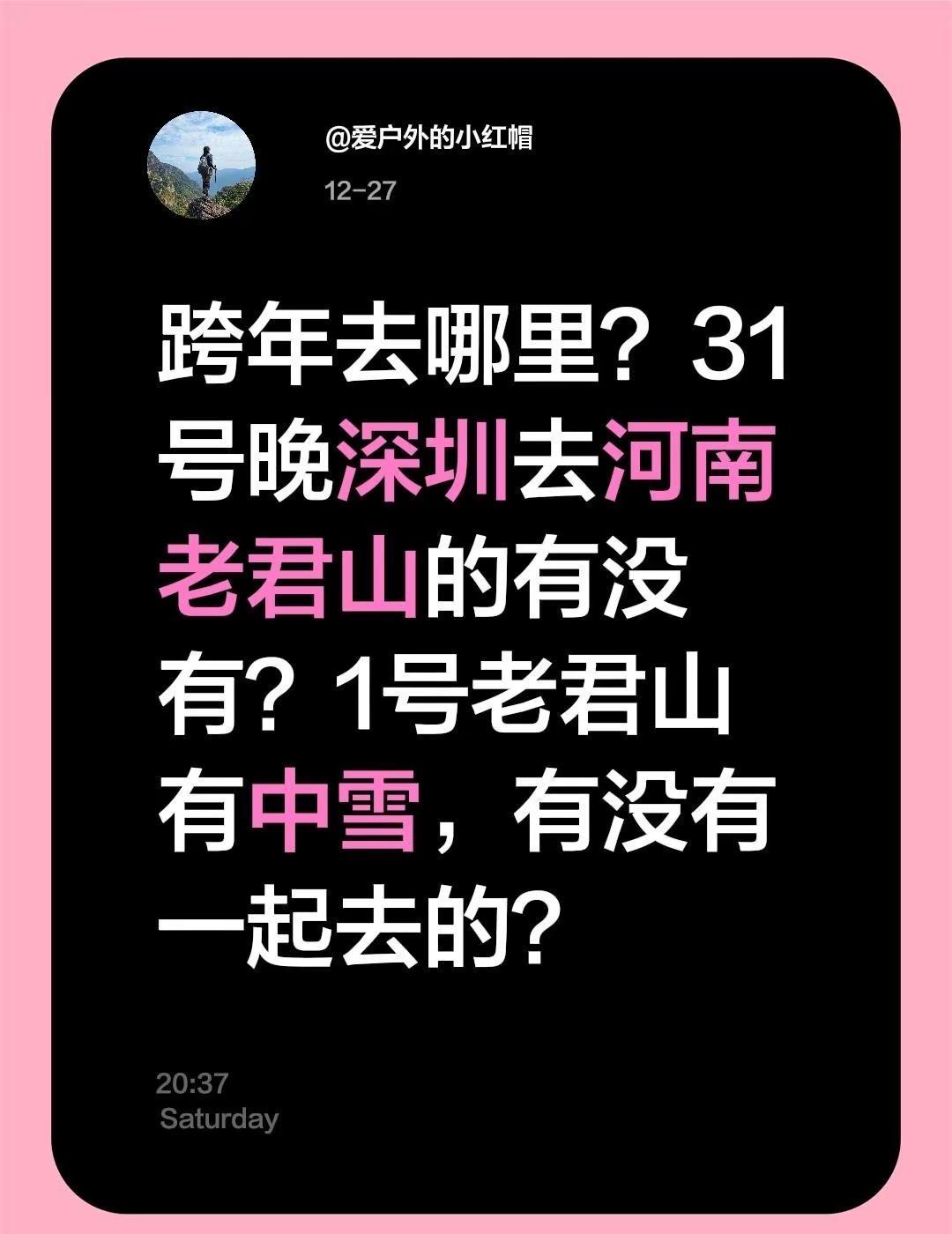 我评论了@爱户外的小红帽 的作品:跨年去哪里?31号晚深圳去河南老君山的有没有?