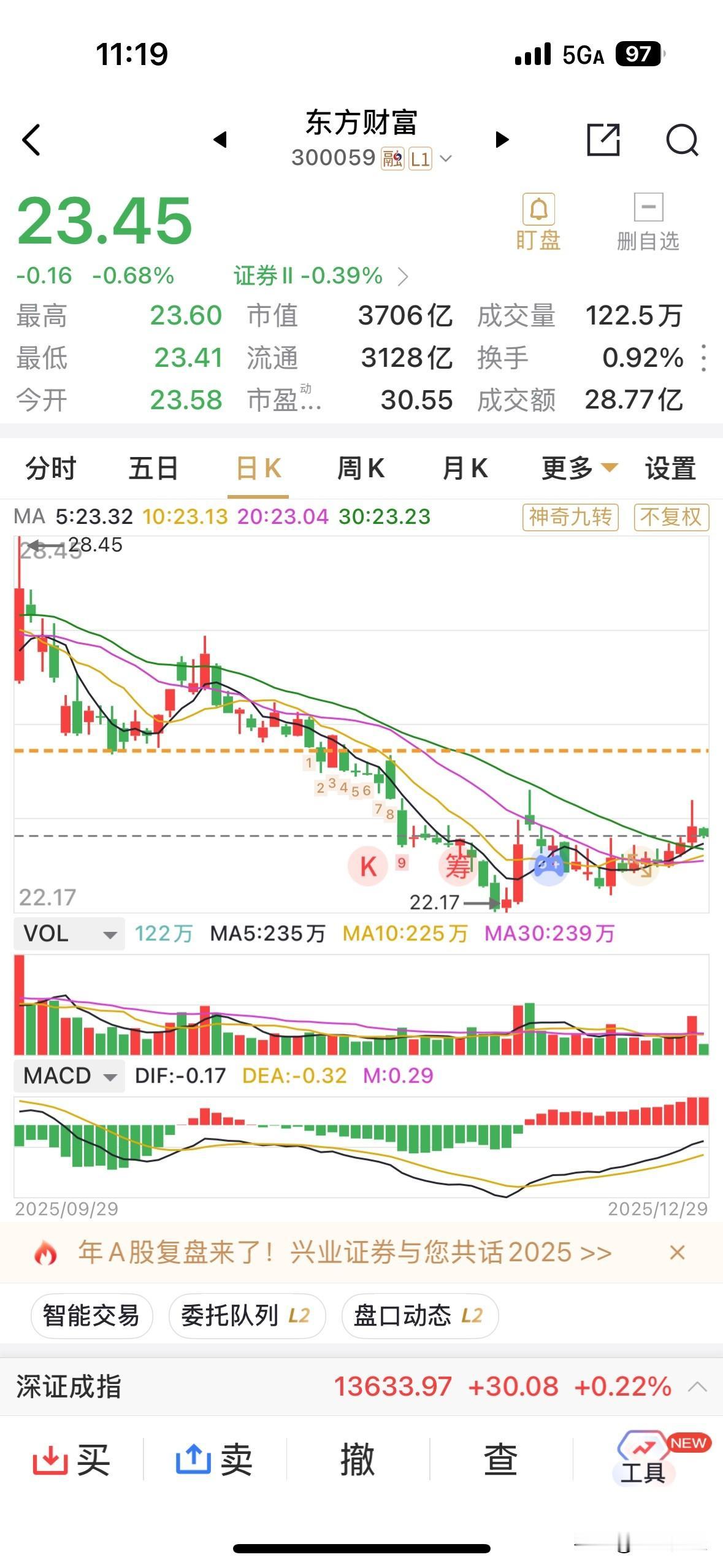 券商但凡发点力,估计沪指就冲上4000点啦,真渣! 估计九连阳的沪指,令人生畏,恐怕随时会有大的调整风险,冲高回落的戏码,最少早盘未曾上演。 东方财富刚成交金额超过百亿元,早盘再次缩手缩脚的走势,仅成交30亿元左右,中信证券在港股带动下,一度翻红,但多方实在是出工不出力,在开盘价附近徘徊。 当然持仓券商的朋友,反正今年就那样,丰厚的收成期待,只能把希望放在来年。 乐呀财经