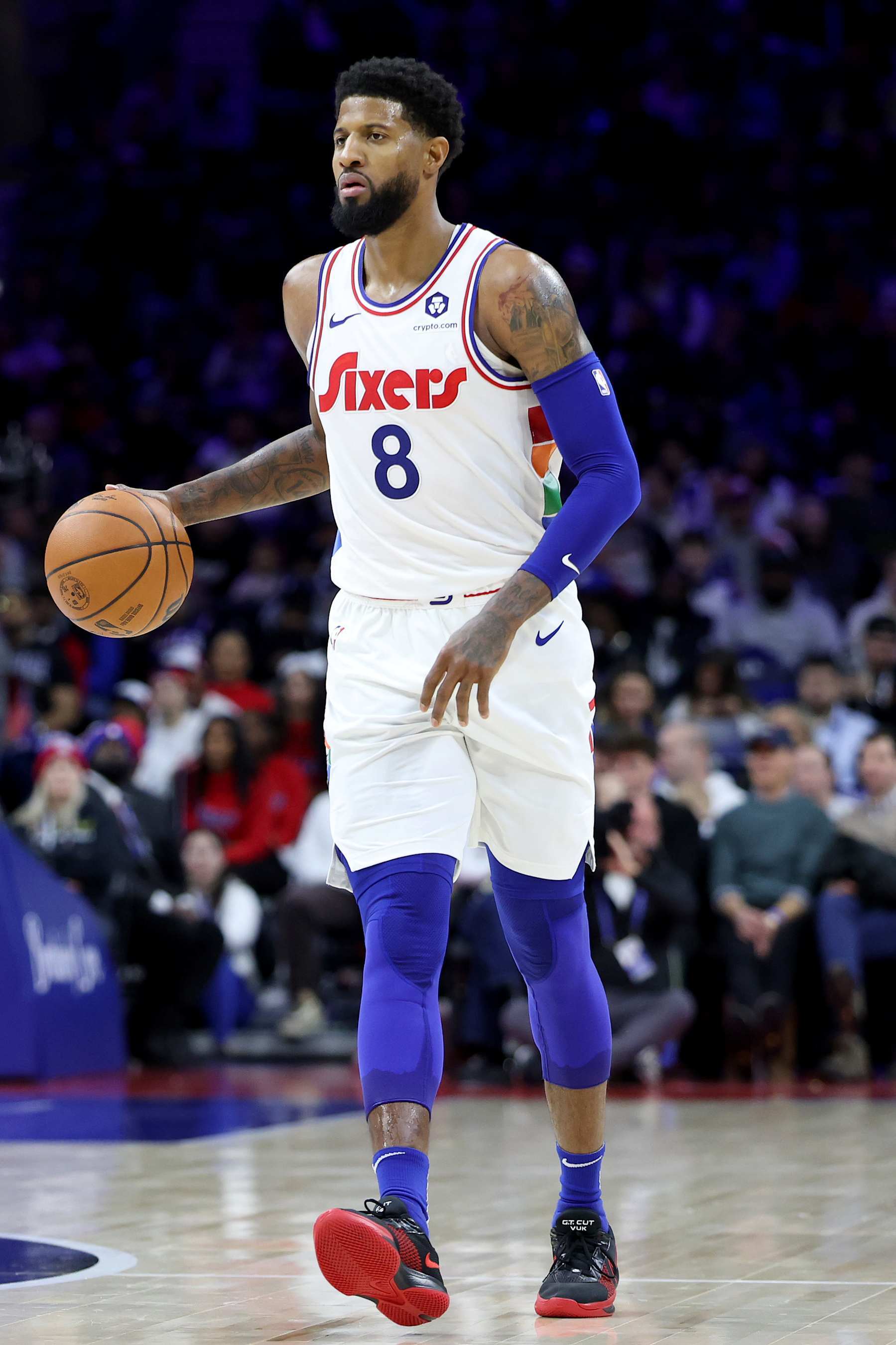 什么水平?本赛季至今的保罗-乔治……——赛季至今一共出战14场——长裤子16分5.4篮板3.4助攻1.4抢断——命中率40.8%+41.6%——真实命中率56.1%还有3年1.7亿顶薪,76人的好日子还在后头……76人vs雷霆NBA常规赛
