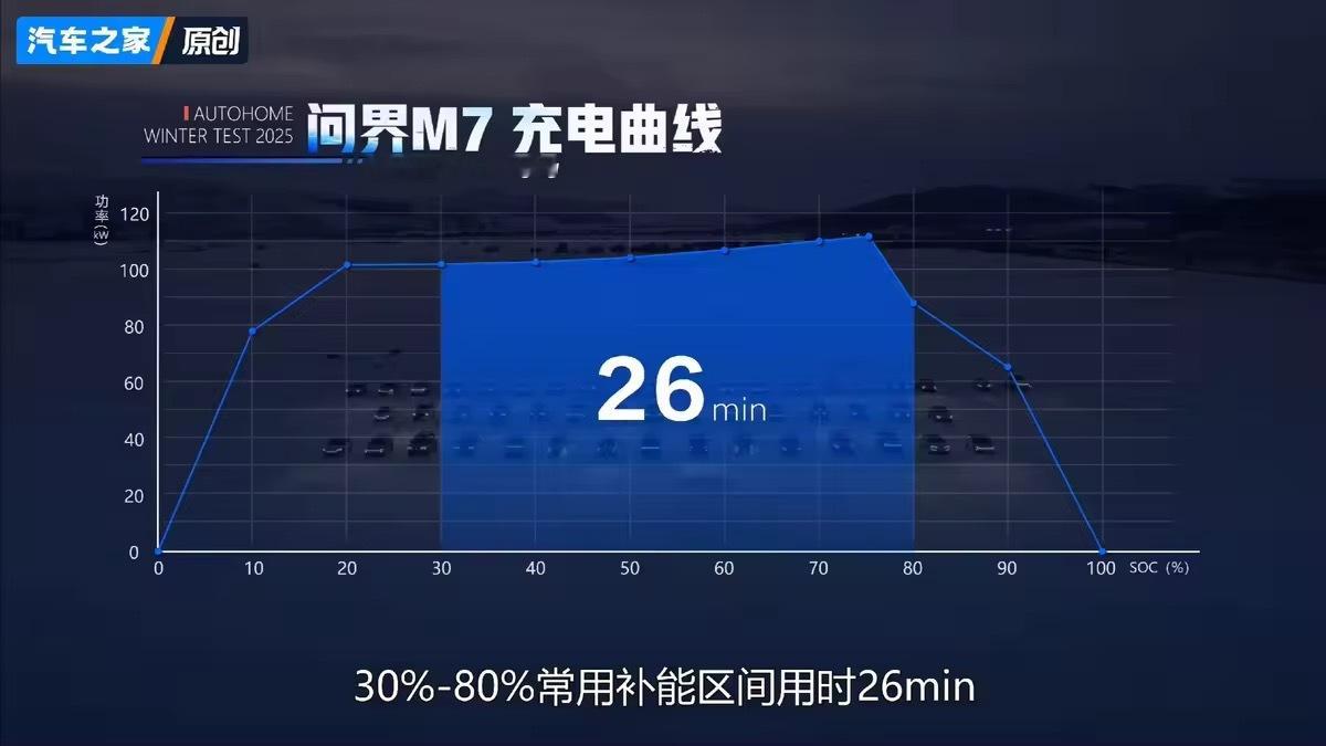 冬天对电车是真的不友好,续航打折、充电慢、路还滑,所以我看车,其实挺看重冬测成绩的。这次全新问界 M7 在汽车之家冬测里,雪地续航、严寒充电、雪地 AEB、紧急变线安全,四项直接第一,而且是在零下二十多度跑出来的。30% 到 80% 充 26 分钟,补能很快。跑得远、充得快、还更稳,这也是为什么问界 M7 能一直大卖的原因吧问界M7冬季实测四项第一问界M7冬测纯电续航达成率第一